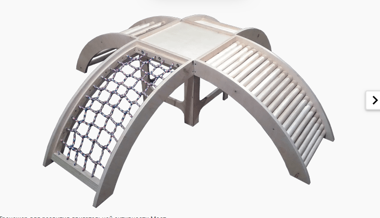 Тренажер Мост представляет собой комплекс из четырех устройств, предназначенных для развития двигательной активности, координации движения, ловкости и умения держать равновесие. Состав набора: лестница, горка с препятствиями, сетка, ребристая горка. Изделие выполнено из фанеры. Размером в ширину и длину 200 см. и 45 см. в высоту. Преимуществами изделия является большой перечень выполняемых упражнений. Размеры 200 × 200 × 45 см Возраст от 3-х лет