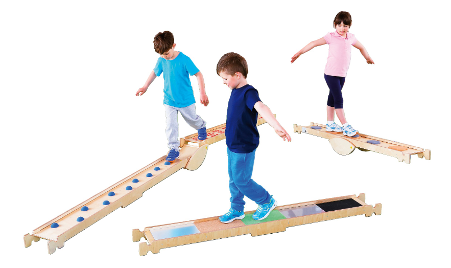 С помощью Балансировочного комплекса развиваются двигательные навыки, чувство осязания и воображение. Набор состоит из 2 подставок, 4 балансировочных платформ с различными поверхностями и настенного кронштейна.  Платформы  могут быть размещены  на качающемся элементе в виде горки, качелей или мостика. После использования платформы можно повесить на настенный кронштейн.