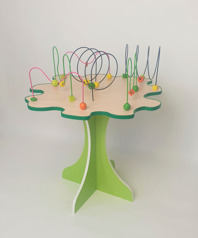 Дидактический стол необычной формы – без острых углов – будет хорошим дополнением интерьера любой игровой комнаты или уголка. Он надолго увлечет малышей, ведь на нем такое большое количество деревянных бусин и изогнутых лабиринтов. Разноцветные бусины – одну или сразу несколько штук – можно двигать по спирали и другим направляющим. Это прекрасный тренажер для маленьких пальчиков! Такая простая игра способствует развитию зрительно-моторной координации, усидчивости, пространственного восприятия. Игровой стол выполнен из экологичного материала. Подходит для развивающих игр детей от 1,5 лет.
