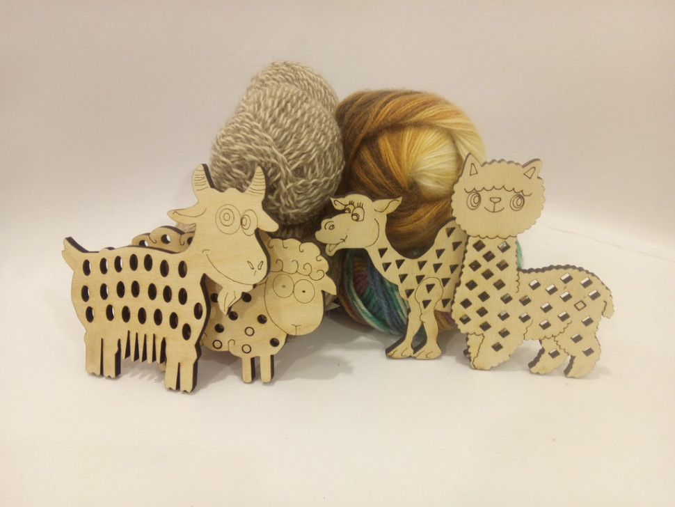 Шнуровка развивает мелкую моторику и усидчивость, ведь продеть нитку в иголку  и в отверстия на животном для маленьких пальчиков не так то просто. Натуральная шерсть приятна на ощупь - развиваются тактильные ощущения. Шнуровать можно различными способами - развивается пространственное мышление и фантазия ребенка. Отверстия в фигурках разной геометрической формы. А еще ребенок может раскрасить фигурку. Максимальный размер 15*15 см. В наборе: фигурки: Козочка, Овечка, Альпака, Верблюжонок (фанера) пряжа 4 мотка (натуральна шерсть) игла 4 шт. ЗИП пакет