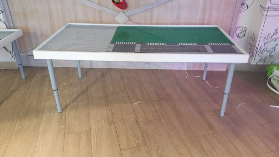Размеры: 760*1510   Ваши дети Фанаты Лего? думаете как оборудовать для них пространство? Большой Лего стол, для хранения и Игр - Идеальное решение.   Большой игровой стол с разметкой под город и перекрестки и зоны для строительства и игр. Стол позволяет заниматься одновременно от 4 детей!   Рабочая площадь: 750*1500 мм Подходит для всех серий: Duplo Friends Creators City  Материал: МДФ