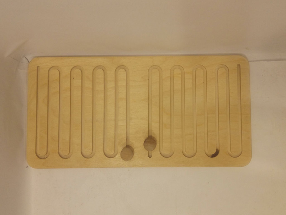 Выполняя упражнение одновременно обеими руками можно добиться синхронной работы обоих полушарий мозга. При такой работе левого и правого полушарий улучшается эффективность работы всего мозга, развивается восприятие, долгосрочная память, координация движения рук, мелкая моторика, облегчается процесс чтения и письма. Ребёнок берет бегунок и вставляет его в начало лабиринта, проходит весь лабиринт сначала только правой рукой, затем только левой рукой, после этого двумя руками одновременно. Таким образом в работу включаются оба полушария головного мозга и происходит их синхронизация. Упражнения желательно проводить ежедневно на протяжении минимум 6 недель, по 10-15 минут в день.. Также можно рекомендовать и людям пожилого возраста для поддержания мозговой деятельности. Размер: 50*25 см.