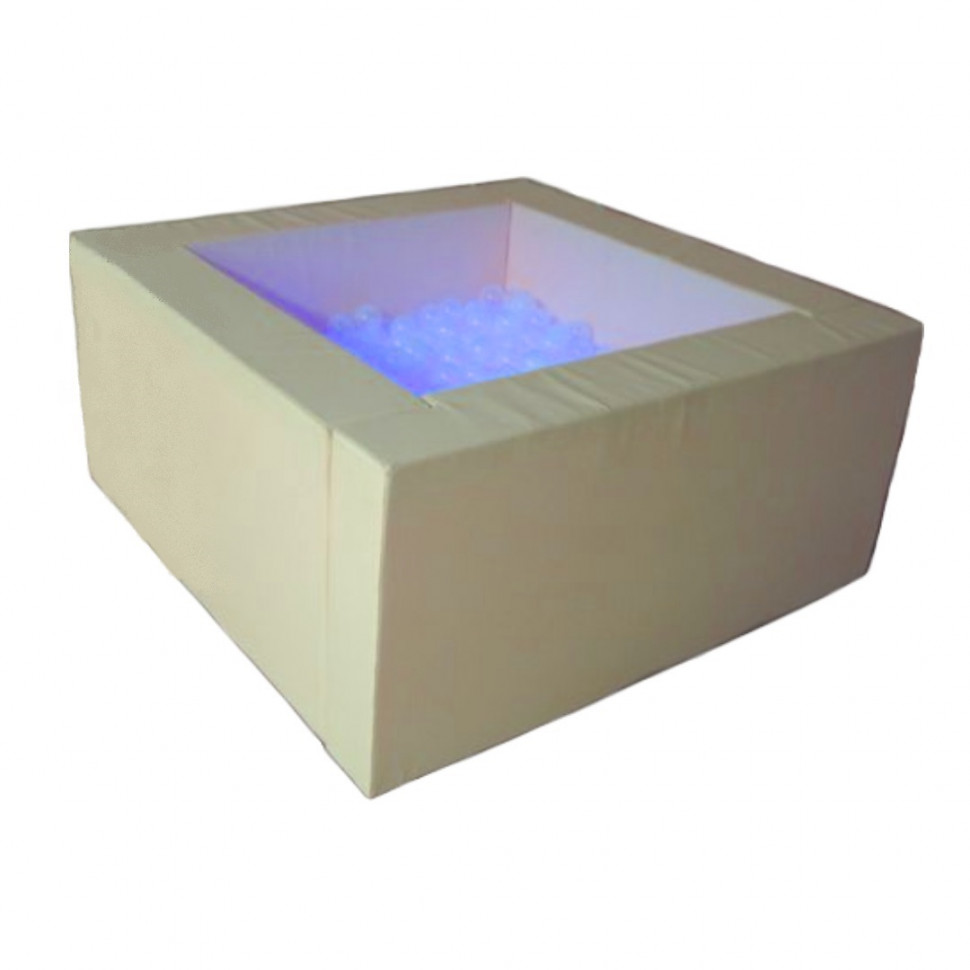 Интерактивный сухой бассейн - неотъемлемый элемент сенсорных и детских игровых комнат, который применяется для релаксации, зрительной и звуковой стимуляции. Он полезен детям, взрослым, пожилым людям и людям с ограниченными возможностями. Сухой бассейн идеален для игр с детьми, которые не умеют плавать, ведь легкие пластиковые шарики удерживают тело ребенка, создавая ощущение невесомости. В отличие от обычного сухого бассейна интерактивный оборудован подсветкой, управление которой осуществляется с помощью пульта, который входит в комплектацию. Материал : экокожа и поролон Цвет : бежевый На выбор предлагаем вам 2 размера (внешние): 150х150 см и 200х200 см с толщиной стенок 20 см, но можем изготовить бассейн по Вашим размерам. Дополнительно рекомендуем приобрести прозрачные пластиковые шарики : для бассейна 150х150 см - рекомендуем 1500 шт, а для размера 200х200 см - 1700 шт.