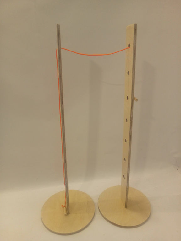 Сборная конструкция, состоящая из двух вертикальных стоек с горизонтальной веревкой (заменяет жесткую планку). Стойка выполнена из фанеры, покрытие лак. Размеры 7 см × 25 см × 76 см