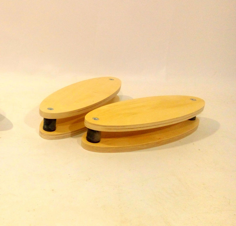 Качающиеся опоры для ног позволяют наклоняться только в боковом направлении – слева направо (или наоборот) – тем самым, тренировать независимо ось голени, в частности, голеностопный сустав. Их можно поворачивать и устанавливать на требуемом расстоянии друг от друга. Качающиеся опоры для ног можно также использовать в сочетании с другими тренажерами и таким образом усиливать интенсивность совместного движения. Размер: длинна 35 см, Материал: фанера.