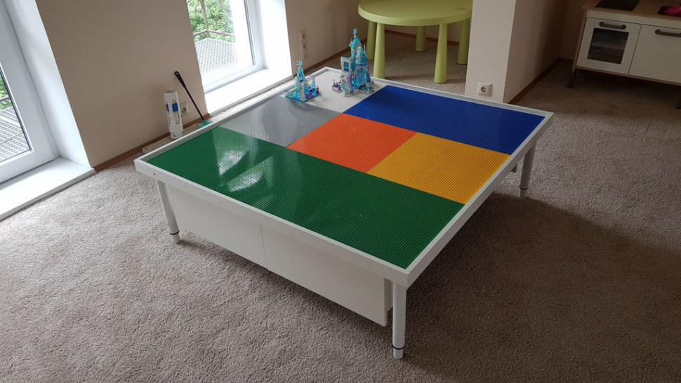 Удобный стол с выдвижными ящиками для хранения деталей. Цвет пластин на ваш выбор.  Подходит для всех серий: Duplo Friends Creators City  Материал: МДФ, ножки телескопические.