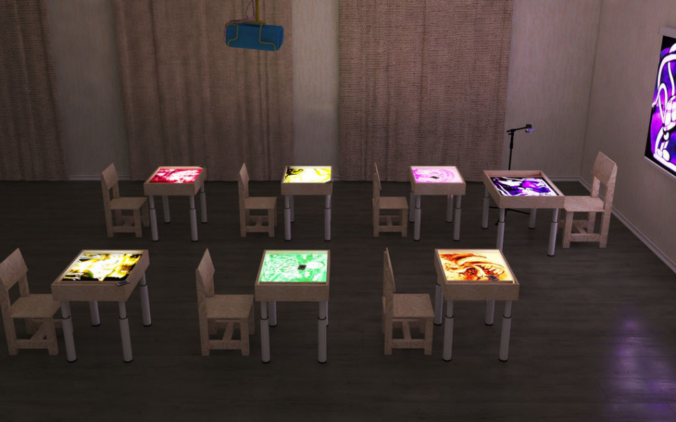 Студия для рисования песком - идеальное решение для организации группового творчества и обучения детей, рассчитанная на 6 детей и 1 педагога. В комплекте поставляются световые столы на телескопических ножках, которые позволяют подстроить высоту для любой возрастной категории. Для начала занятий вам потребуется лишь помещение с доступом к электрической сети. Комплектация студии: световой стол "Макси" с отсеком для учителя (сосна, раб. поле 50х70 см) - 1 шт световой стол "Стандарт" с отсеком для учеников (сосна, раб. поле 40х50 см) - 6 шт сетевой адаптер - 7 шт веб камера - 1 шт штатив для камеры - 1 шт натуральный песок (фракция 0,1-0,3) - 15 кг  совочек с щеточкой - 1 шт Дополнительно рекомендуем приобрести:  Крышки для столов и инструменты Проектор Экран для проектора Стулья Ножки телескопические изготовлены из прочной стальной трубы круглого сечения и имеют 4 уровня регулировки высоты.   Уровни Высота ножек Высота стола 1 38,0 см  53,0 см 2 44,0 см  59,0 см 3 50,0 см  65,0 см 4 56,0 см 71,0 см  Характеристики  Диаметр внешней трубы, мм 40 Диаметр внутренней трубы, мм  32 Толщина стали, мм 1,5 Количество уровней регулировки 4 Пластиковая заглушка для защиты покрытий пола от повреждений  есть Цвет слоновая кость, белый  Установка ножек: ВНИМАНИЕ!!! Квадратная площадка ножки крепится в стенки светового планшета шурупами. В дно светового планшета вкручивать шурупы запрещено, так как это может повредить светодиодную подсветку, также нельзя устанавливать шуруп в угол светового стола в место стыка деталей. Регулировка высоты производится с помощью специальных мебельных винтов: чтобы изменить высоту необходимо выкрутить этот винт, установить нужную высоту и снова закрутить винт. Вся процедура регулировки выполняется при помощи простой отвертки (или шуруповерта), т.е. самостоятельное изменение размера детьми практически невыполнимо (требование безопасности).