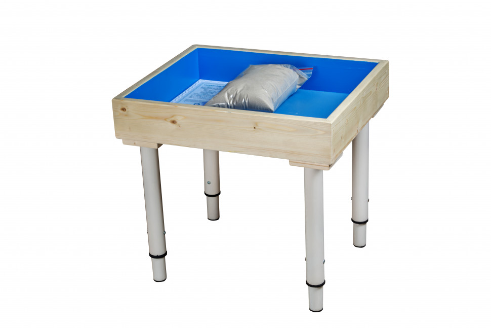 Песочница широко применяется для психологической терапии как для детей, так и для взрослых. В зависимости от поставленных целей и возраста аудитории психологи используют в работе песочницы разных размеров и форм. Модель "Стандарт" - песочница размером 40х50х13 см Материалы : массив дерева (сосна), дно из влагостойкой фанеры, внутри дно и бортики покрыты специальной "резиновой" краской голубого цвета, все швы тщательно загерметизированы, вся песочница покрыта безопасным водостойким лаком, что позволяет работать не только с влажным песком, но и с водой. Песочница укомплектована металлическими телескопическими ножками, что позволяет работать с разными возрастными группами. 4 уровня высоты телескопических ножек (без учета высоты песочницы) : 1 уровень – 38 см 2 уровень – 44 см 3 уровень – 50 см 4 уровень – 56 см Установка ножек: Ножки крепятся шурупами к дну песочницы. Регулировка высоты производится с помощью специальных мебельных винтов: чтобы изменить высоту необходимо выкрутить этот винт, установить нужную высоту и снова закрутить винт. Вся процедура регулировки выполняется при помощи простой отвертки (или шуруповерта), т.е. самостоятельное изменение размера детьми практически невыполнимо (требование безопасности). Комплектация : песочница - 1 шт ножки телескопические - 4 шт кварцевый песок - 5 кг