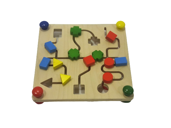 Цель -переместить подвижные элементы к соответствующим прорезям основы (соответствие формы). Предназначен для развития зрительно-моторной координации, мелкой моторики, цветовосприятия, логического мышления, внимания. Материал дерево Размер: 29х29х7 см