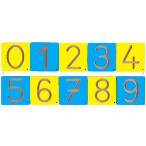 В комплекте 10 цифр от 0 до 9, каждая на отдельной дощечке, размером 8х8 см. Цифры не написаны, а выдавлены, что позволяет вести по ним пальчиком или карандашом, что помогает не только выучить счет, но и научиться писать цифры.
