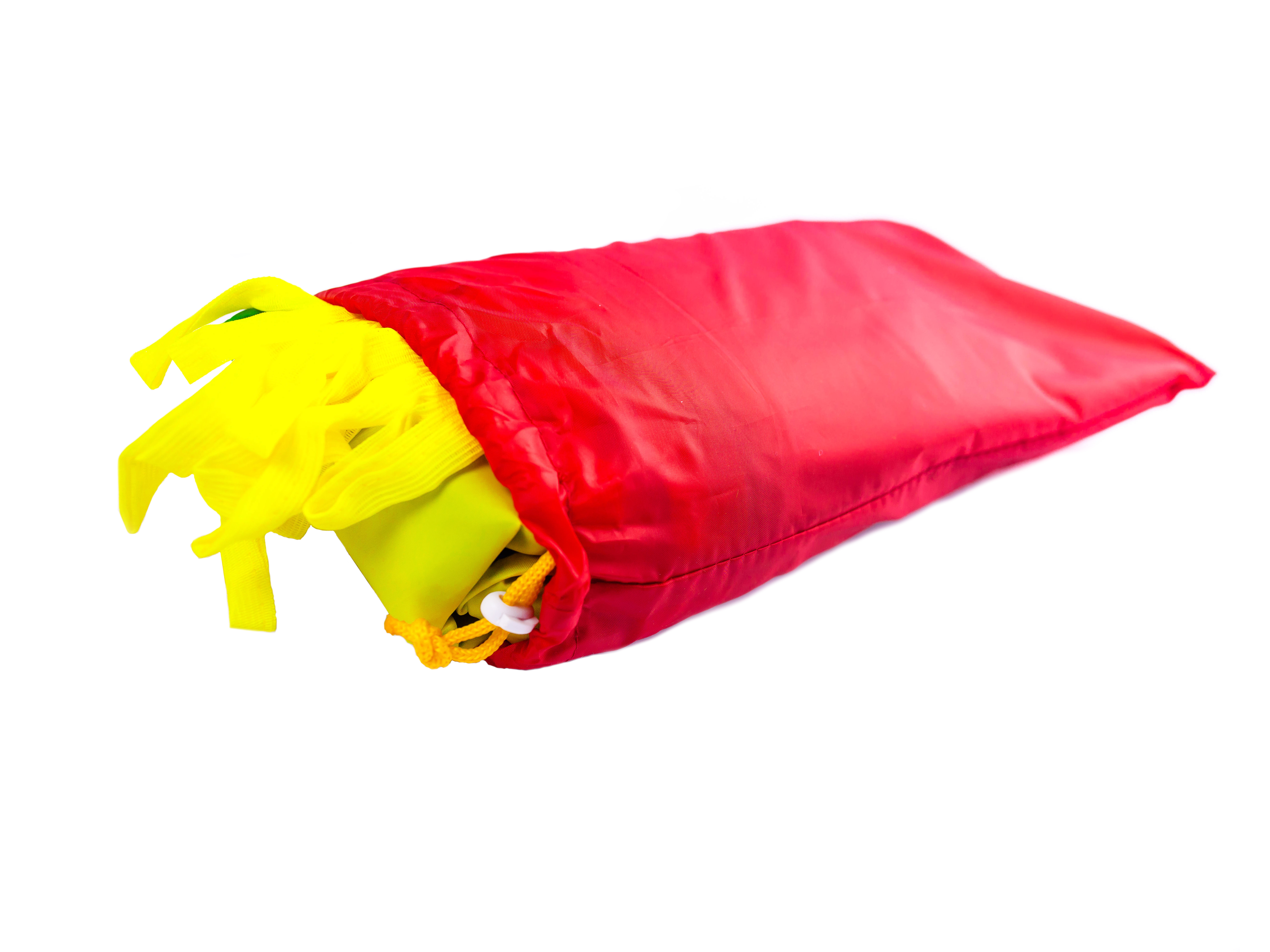 Комплектация: парашют, сумка для хранения. Парашют состоит из 8-ми клиньев 4-х цветов: синий, красный, желтый, зеленый, по окружности пришиты 16 ручек, в центре парашюта - сетка.
