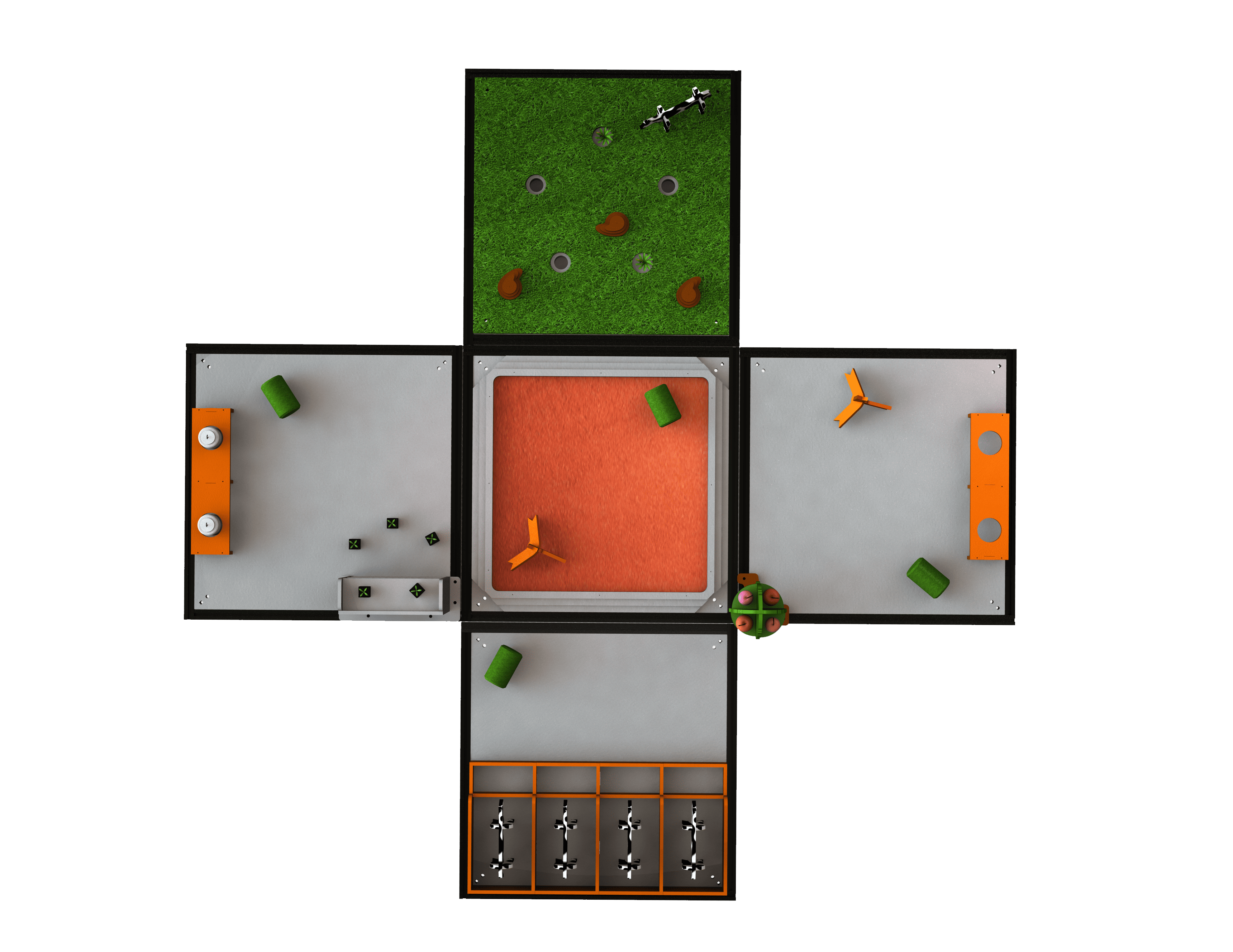 Испытательный полигон «РТК АГРО» представляет собой реконфигурируемую полосу препятствий, составными элементами которой являются 5 различных ячеек с испытаниями и заданиями.