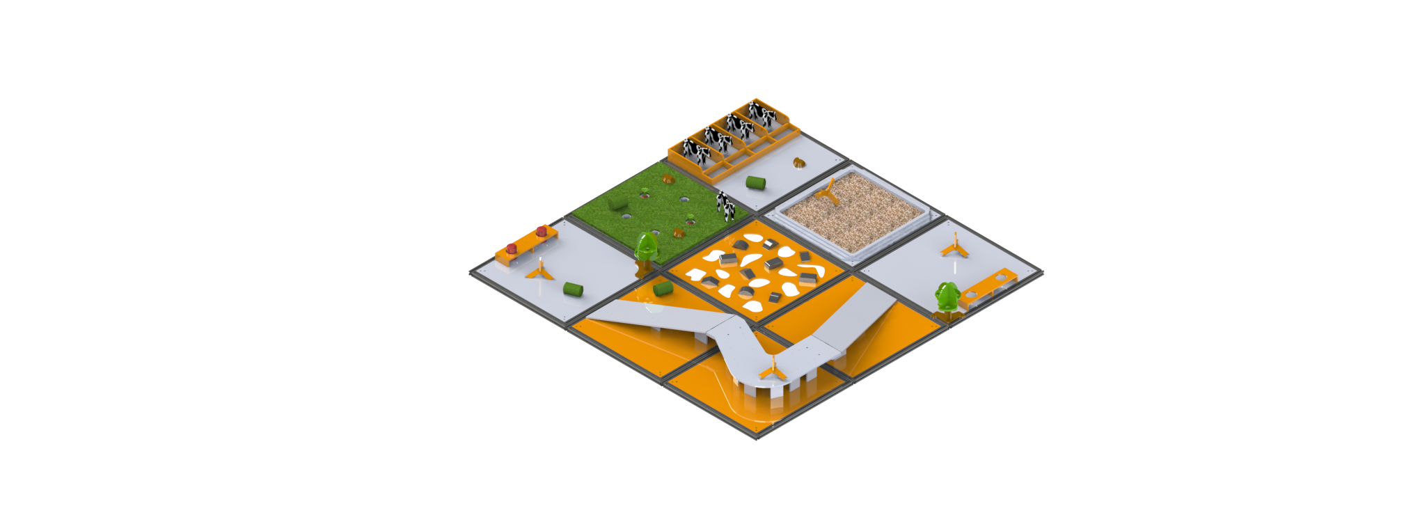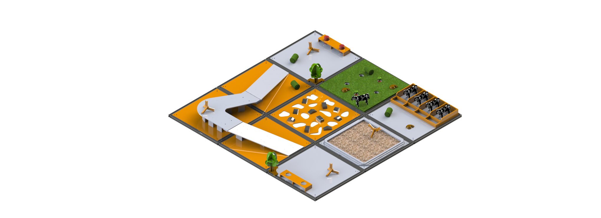 Испытательный полигон «РТК АГРО» представляет собой реконфигурируемую полосу препятствий, составными элементами которой являются 9 различных ячеек с испытаниями и заданиями.
