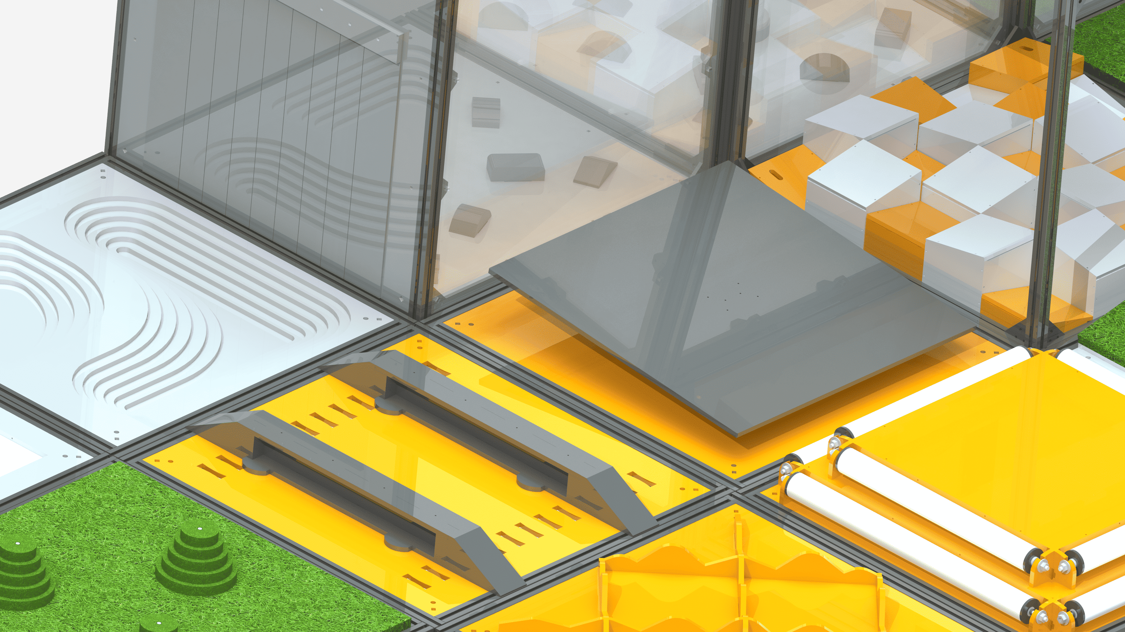 Испытательный полигон «Премиум» представляет собой реконфигурируемую полосу препятствий, составными элементами которой являются 50 различные ячейки с испытаниями и заданиями, преодоление или выполнение которых позволяет оценить возможности мобильных роботов. Ячейка - куб или квадрат, ограниченный металлическим профилем.