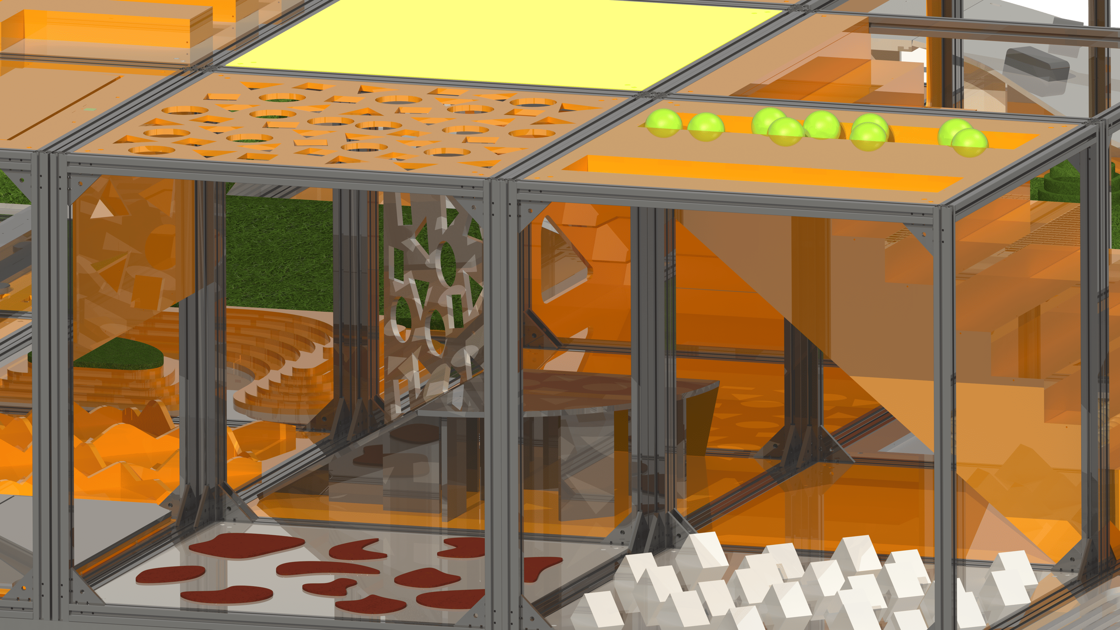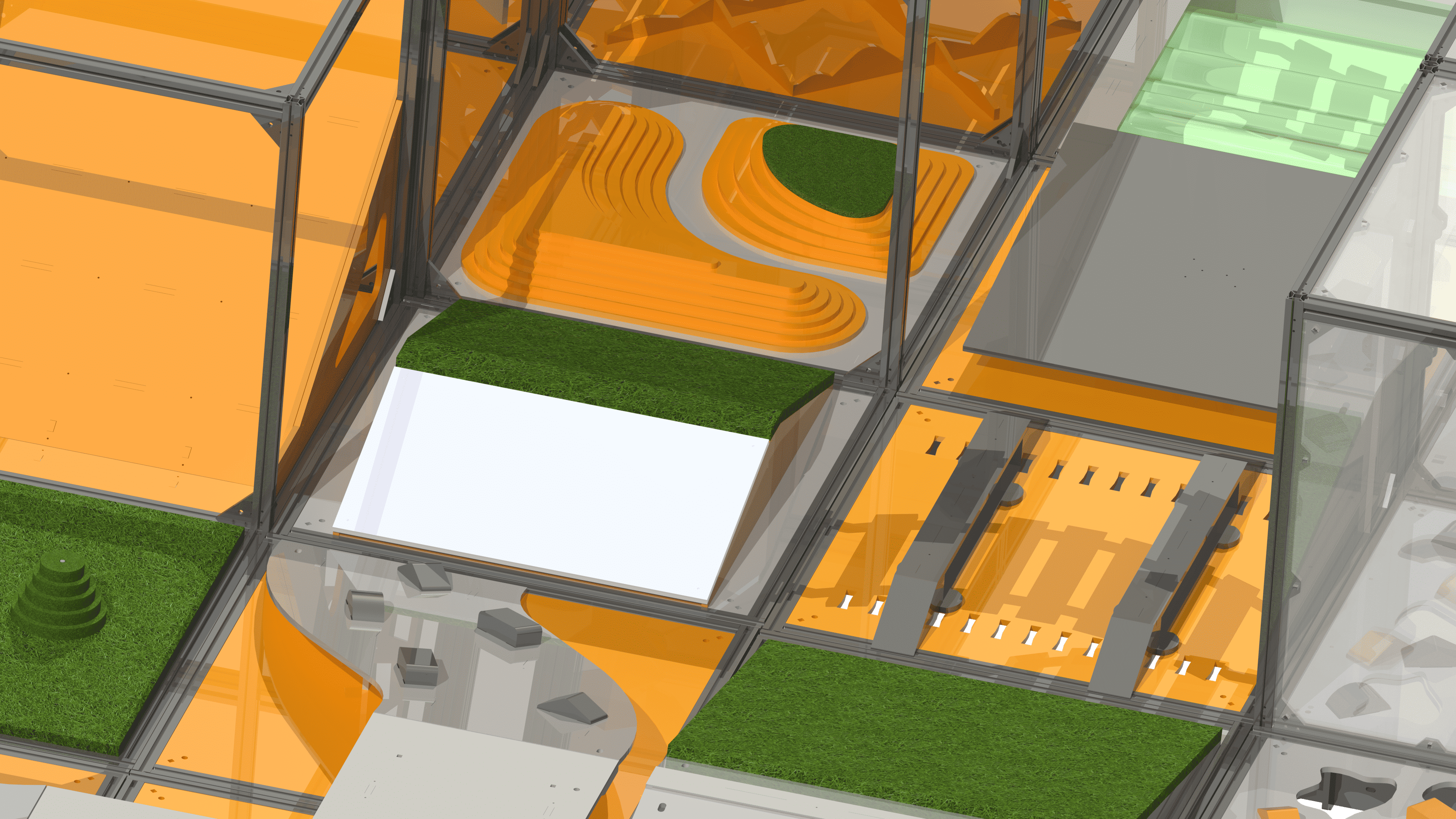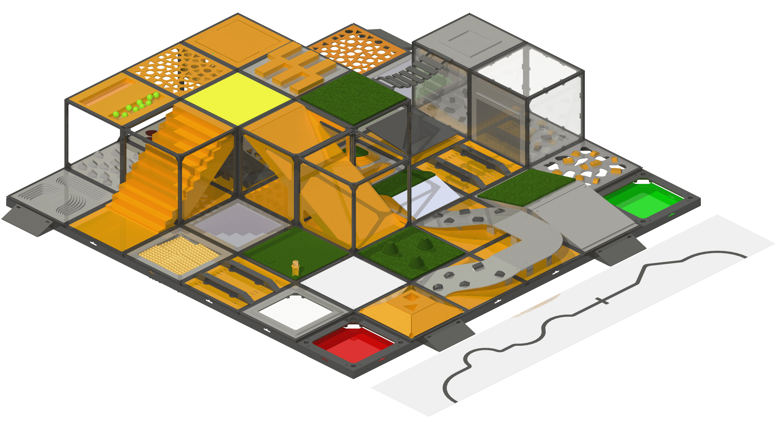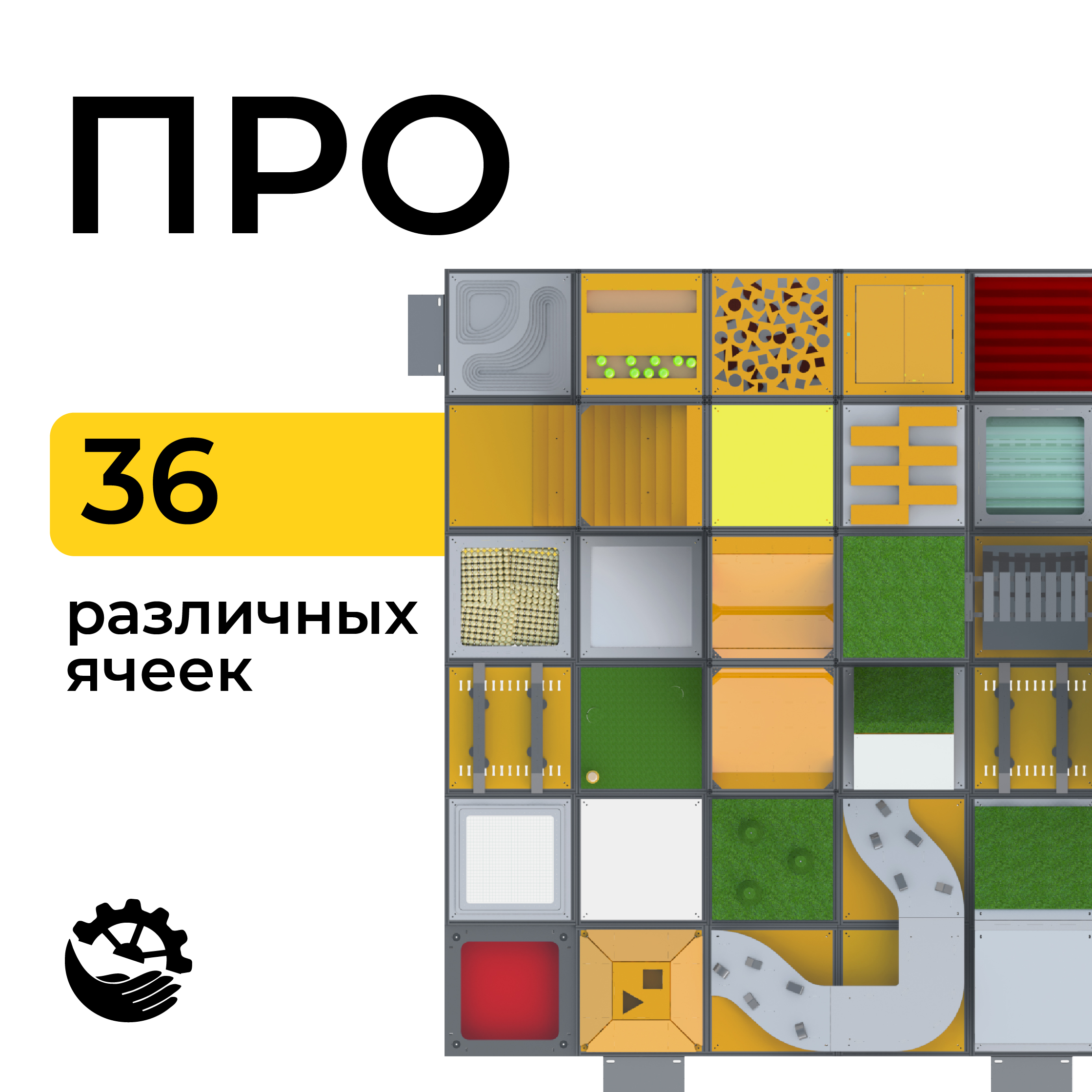 Испытательный полигон «Про» представляет собой реконфигурируемую полосу препятствий, составными элементами которой являются 36 различных ячеек с испытаниями и заданиями, преодоление или выполнение которых позволяет оценить возможности мобильных роботов. Ячейка - куб или квадрат, ограниченный металлическим профилем.