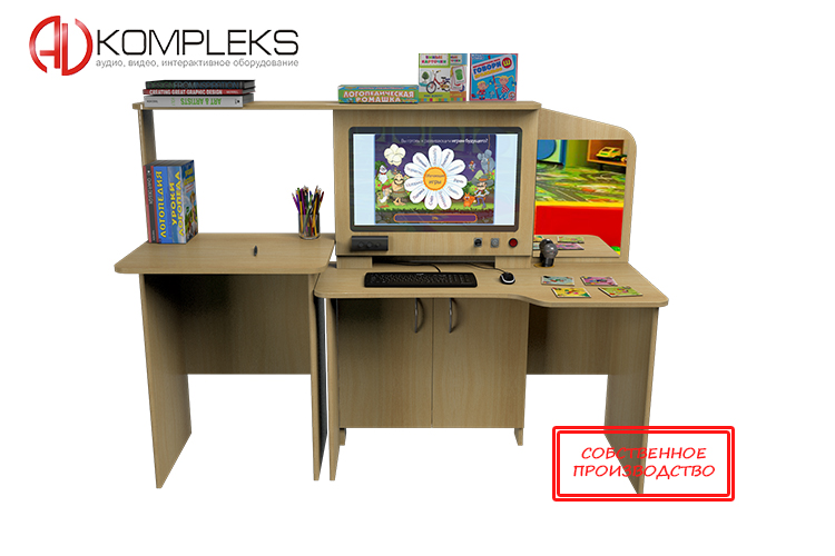 В комплектацию «AVKompleks Logo 15» входят: интерактивный экран 25" дюймов, разрешением 1920х1080 px и поддержкой до 10 одновременных касаний, персональный компьютер Intel Core i3, беспроводная двухканальная радиосистема, зеркала для отработки мимики, акустическая система, клавиатура, мышь, HDMI и Usb 2.0 кабели, сетевой фильтр. Логопедический стол выполнен в антивандальном исполнении, то есть он защищен от случайных повреждений. Коррекционное оборудование способствует успешному развитию речи, логическому мышлению и другим навыкам за счет встроенных игровых программ, дидактических материалов для педагогов. Приложения настроят ребенка на положительные эмоции, организуют занятия в игровой форме. Это только увеличит вовлеченность детей в обучение.