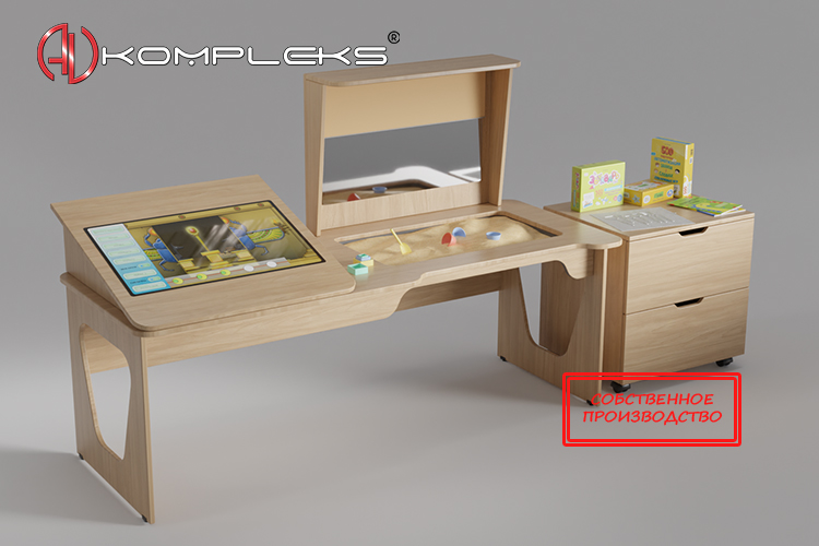 Профессиональный интерактивный логопедический стол «AVKompleks Logo 39» разработан российской компанией «АВ Комплекс». Компания имеет собственное производство для реализации проектных решений. Стол предназначен для работы специалиста по коррекции речи у детей дошкольного и школьного возраста. Найдет свое применение в кабинете логопеда, детских садах, школах, других образовательных учреждениях. В конструкции логопедического стола «AVKompleks Logo 39» предусмотрена возможность проведения песочной терапии, которая оказывает благоприятное воздействие на ребенка; помогает снять психологическое напряжение; развивает мелкую моторику рук; улучшает концентрацию внимания; вырабатывает усидчивость и дисциплину.
