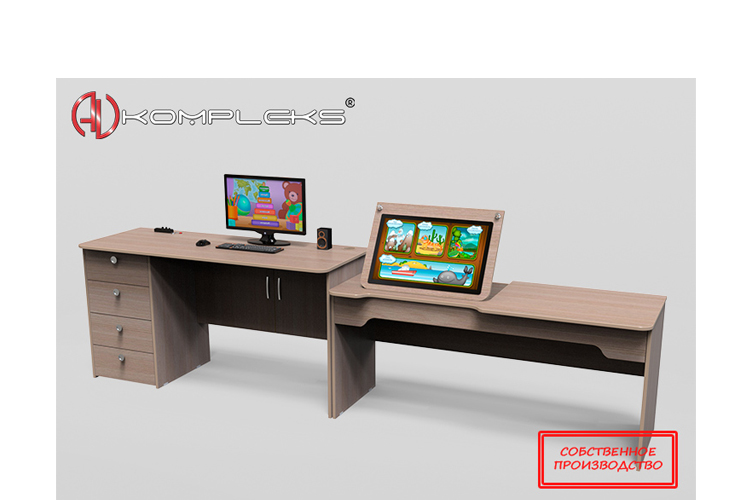 Профессиональный интерактивный стол психолога-дефектолога «AVKompleks DUO» (возраст 3-10 лет) представляет собой удобное, просторное рабочее место психолога для проведения занятий с детьми. Его особенность заключается в том, что стол психолога и ребенка объединены между собой для комфортного проведения занятий. Можно проводить занятия по всестороннему обучению. В процессе обучения развивается мелкая моторика, улучшаются логические способности и творческое мышление. Ребенок учится распознавать цвета, цифры, анализировать эмоции. За счет применения интерактивного оборудования лучше усваивается информация, представленная в игровой форме. Стол соответствует нормам ФГОС. Производится из нетоксичных материалов, безопасен для применения.