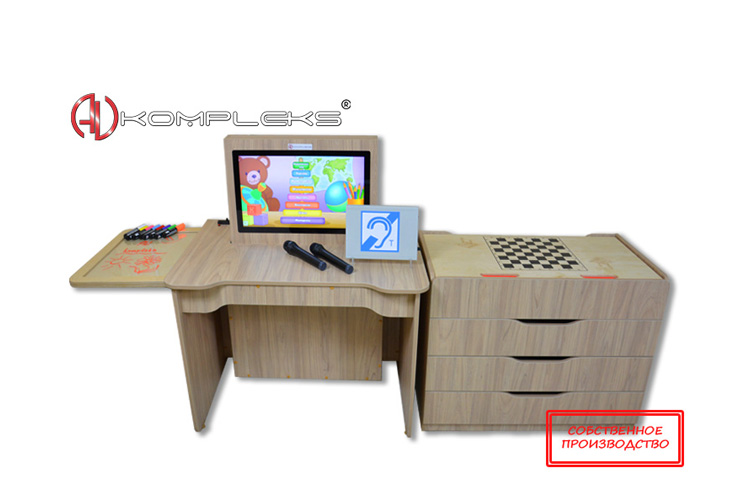 Профессиональный интерактивный стол психолога-дефектолога «AVKompleks ПсихоЛогика Prof Edu» (возраст 5-18 лет) – это современное оборудование для проведения коррекционно-развивающих занятий с детьми в школьных и дошкольных учреждениях. Наличие интерактивных элементов делает обучение увлекательным, способствует лучшему запоминанию информации, упрощает работу психолога. С помощью оборудования проводится ранняя профориентация ребенка, выявляются особенности поведения, в процессе обучения осуществляется консультация. Преподаватель анализирует техники, которые применяет для занятий и при необходимости корректирует их. Особенностью оборудования выступает отсек для творчества с кинетическими материалами – это помогает проводить занятия по развития мелкой моторики. Крышка отсека представлена в виде шахматной доски, укомплектованной фигурками шахмат и шашками.