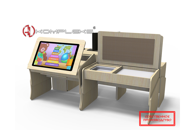 Для детей школьного возраста профессиональный интерактивный стол психолога-дефектолога «AVKompleks ПсихоЛогика UNI (возраст 7-18)» может стать не только средством обучения, но и помощником в решении различных психологических проблем. С его помощью психолог может проводить различные диагностические и коррекционные занятия, помогая ребятам понять и преодолеть свои проблемы, определиться с выбором будущей профессии, улучшить психологический климат в школьном коллективе, сделать сложный подростковый период более комфортным и стабильным. Интерактивный стол психолога-дефектолога укомплектован модулем для песочной терапии, действие которой помогает расслабиться и довериться специалисту. Встроенный в стол ученика интерактивный планшет сделает занятия увлекательными, а установленное программное обеспечение позволит исследовать личностные особенности ученика, определить уровень тревожности, связанной со школой, оптимизировать работоспособность, проанализировать уровень мотивации к обучению. При этом психолог находится за отдельным рабочим столом с монитором, на котором дублируются действия ребенка. Дополнительно предусмотрен модуль с зеркалом для проработки артикуляции и коррекции речи.