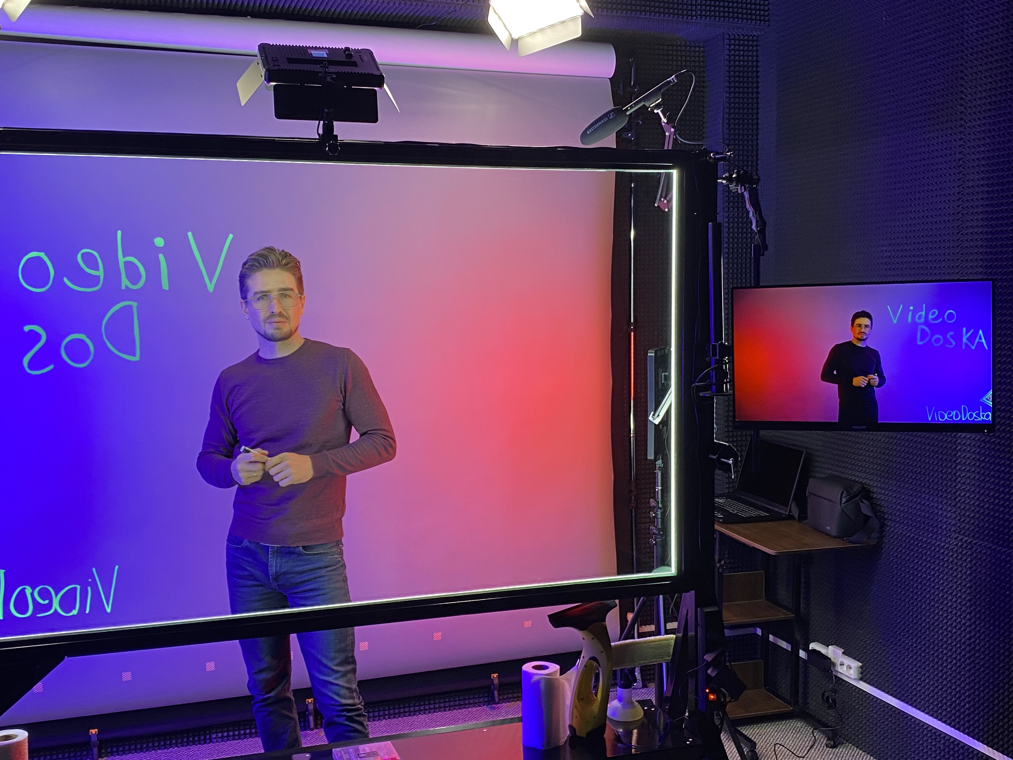 Теги: Мультимедийное оборудование, видеооборудование, оборудование для записи видео, оборудование для видеостудии, лайтборд lightboard, видеодоска, видеостекло, прозрачная доска, стеклянная доска, доска из стекла, для вебинаров, для прямых трансляций, для онлайн-уроков, для до, для записи курсов