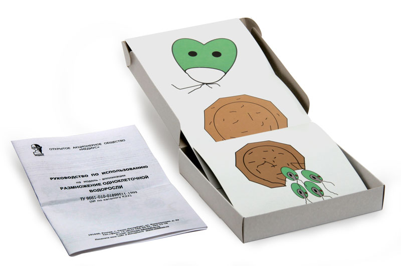 Модель - аппликации "Размножение одноклеточной водоросли" предназначена для демонстрации полового и бесполого размножения одноклеточной водоросли хламидомонады при изучении разделов "Растения. Бактерии. Грибы. Лишайники" и "Общая биология". Модель используется при объяснении учителя и опросе учащихся.
