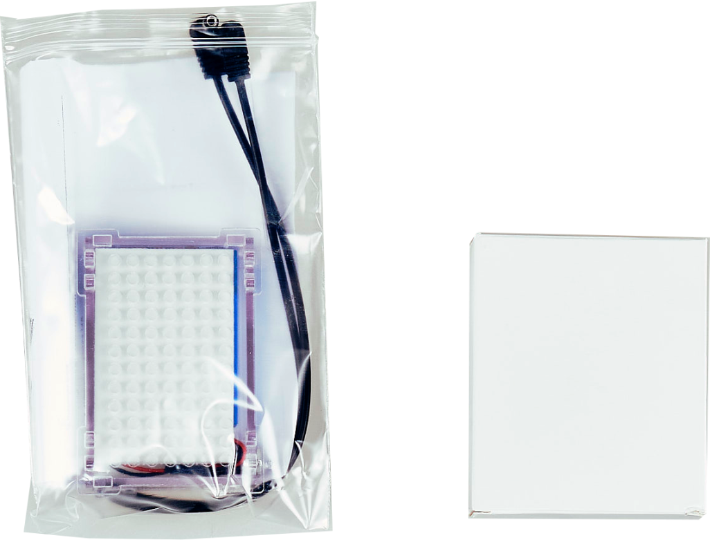 Модуль имеет пластиковый корпус для крепления к деталям конструктора