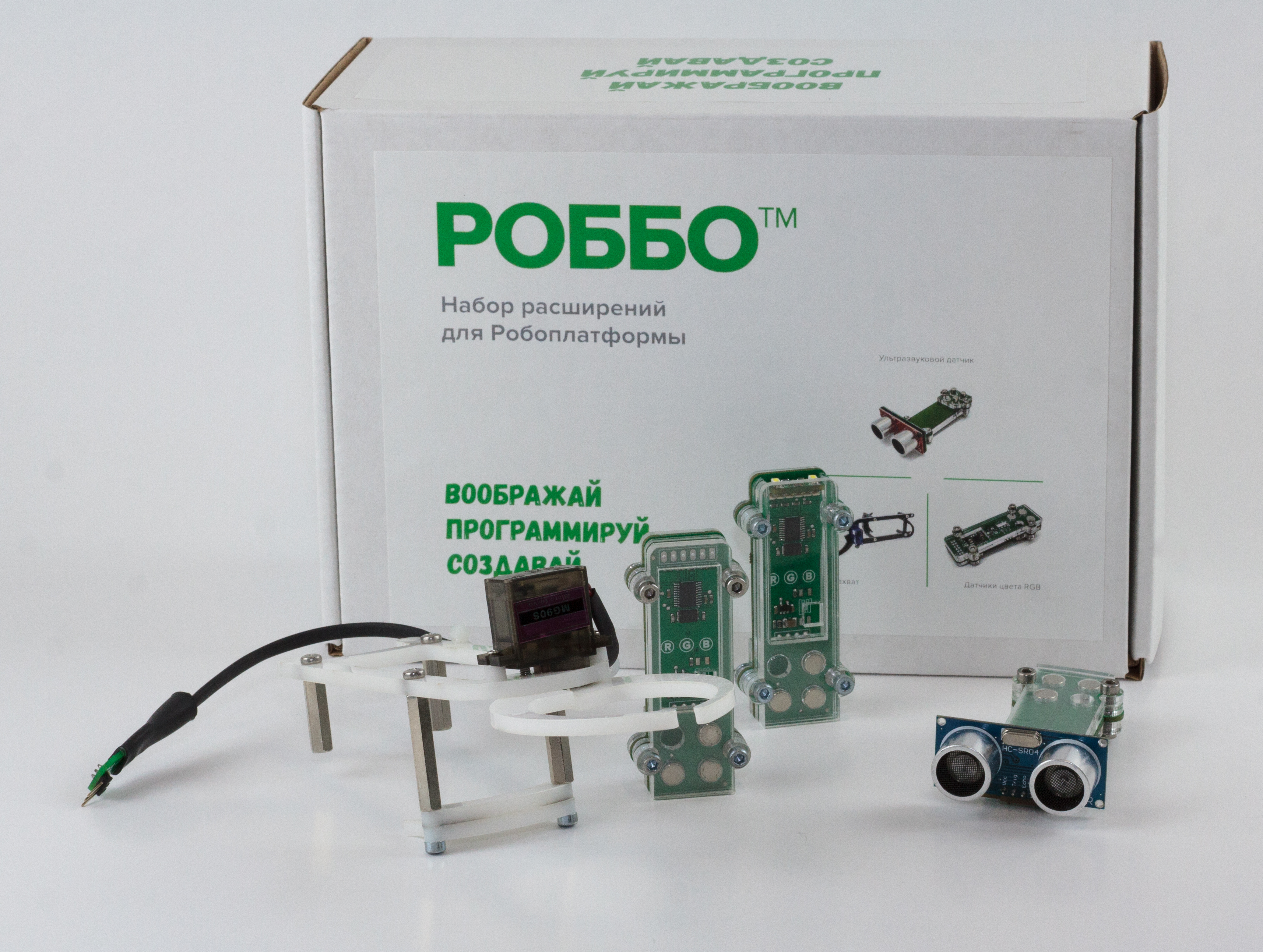 Набор дополнительных датчиков и захват “клешня” расширений значительно обогащает функционал РОББО Платформы.