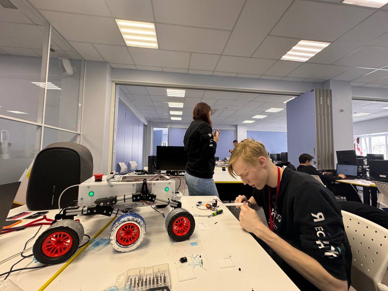 подвеской "Rocker-Bogie". Устройство работает под управлением Robot Operating System (ROS).