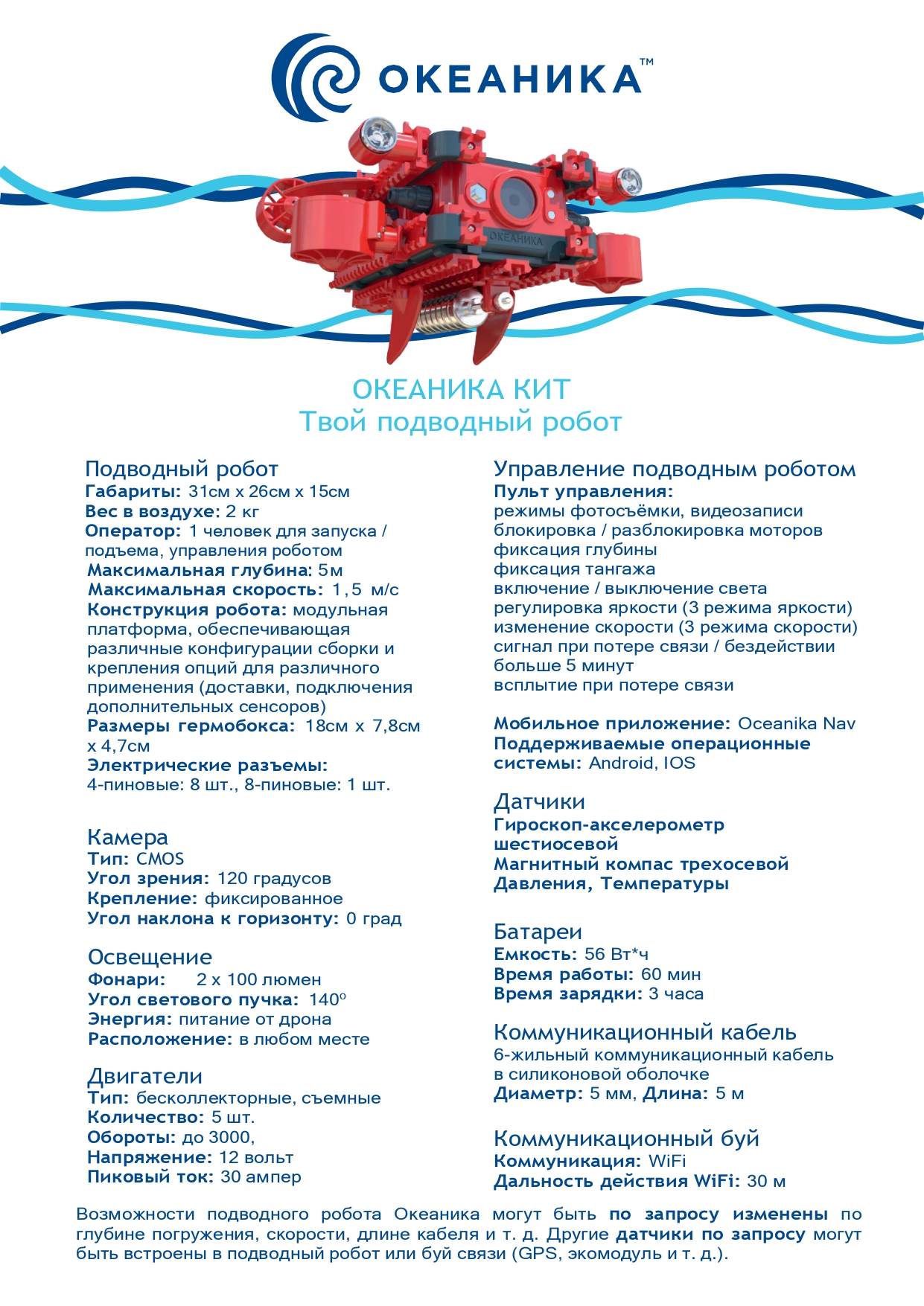 Характеристики Робототехнический набор для подводной робототехники "Океаника КИТ"