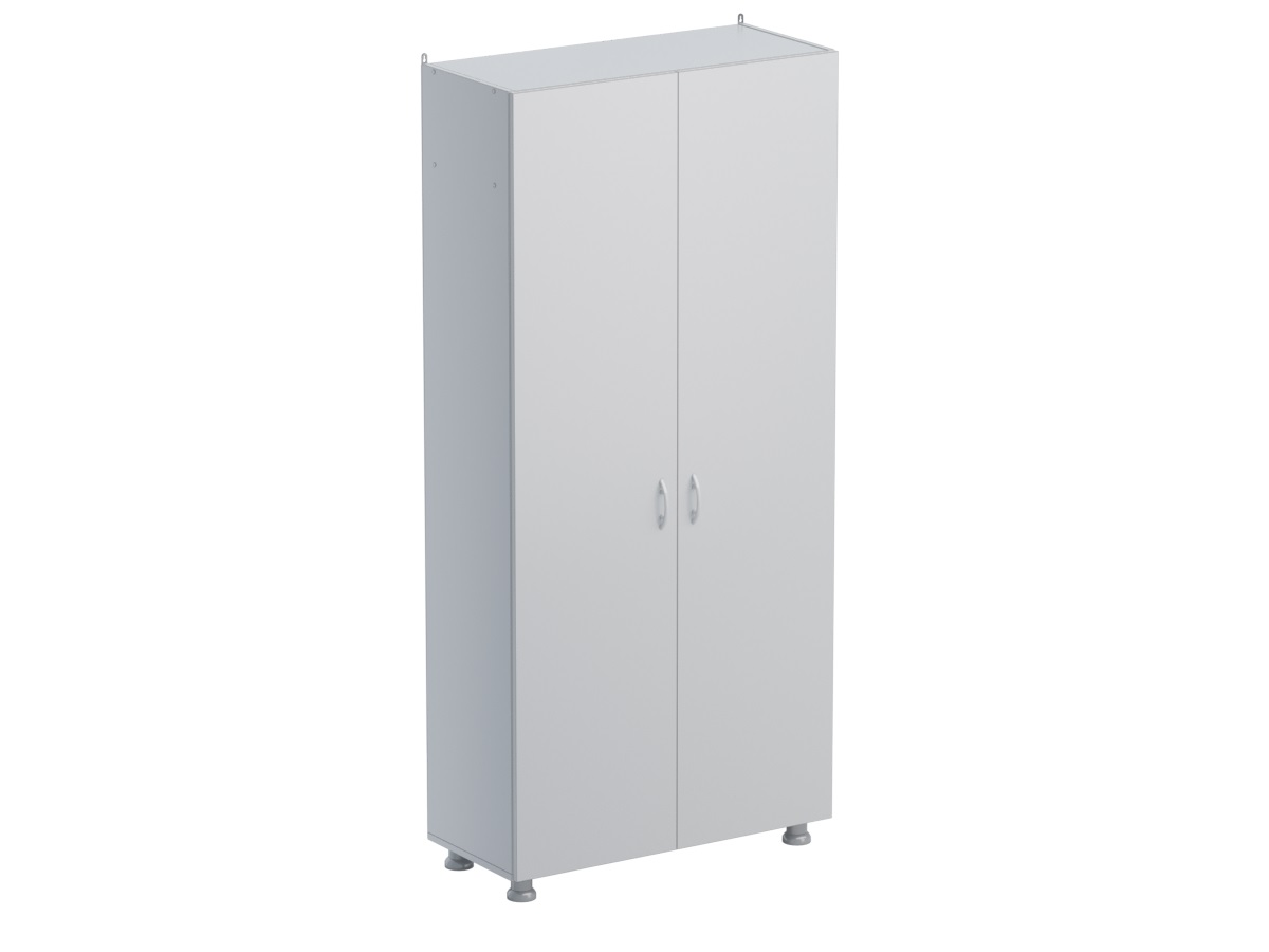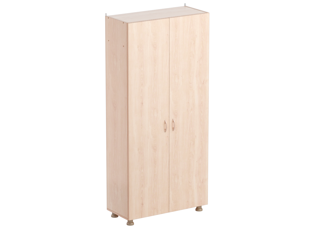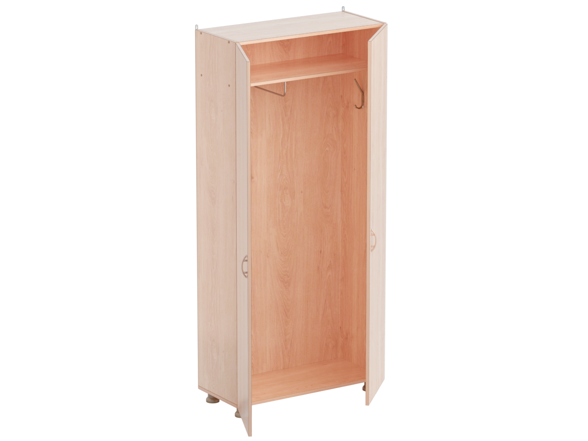 Шкаф для одежды (двухстворчатый) выполнен из ламинированной ДСП 16 мм, торцы обрамлены кромкой ПВХ. Конструкцией шкафа предусмотрена полка для головных уборов, штанга для одежды, 1 металлический крючок для одежды. Шкаф снабжен регулируемыми опорами, позволяющими компенсировать неровности пола. Цвет ЛДСП уточняйте при заказе. Размер: 849х376х1835 мм.