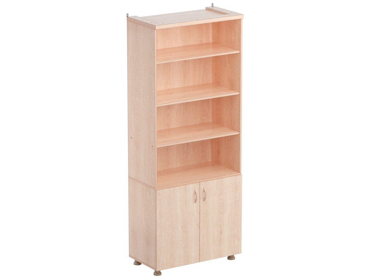 Шкаф для учебных пособий выполнен из ламинированной ДСП 16 мм, торцы обрамлены кромкой ПВХ. Конструкцией шкафа предусмотрены две секции, верхняя открытая, имеет три полки на полкодержателях, нижняя закрытая, имеет одну полку на полкодержателях и дверки. Шкаф снабжен регулируемыми опорами, позволяющими компенсировать неровности пола. Цвет уточняйте при заказе. Размер: 844х440х2100 мм.