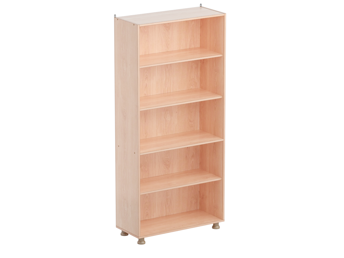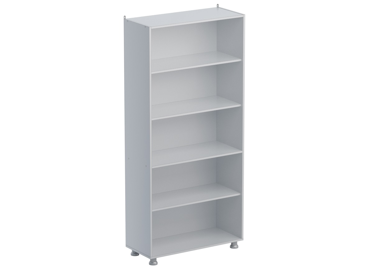 Стеллаж выполнен из ламинированной ДСП 16 мм, торцы обрамлены кромкой ПВХ. Конструкцией шкафа предусмотрены 4 полки на полкодержателях. Шкаф снабжен регулируемыми опорами, позволяющими компенсировать неровности пола. Размер: 849х360х1835 мм.