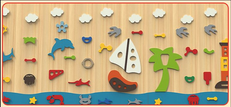 Серия дизайнерских скалодромов не только разнообразит занятия и досуг детей, но и добавит изюминку любому интерьеру. Скалодром "Остров сокровищ" состоит из 4 секций, каждая секция состоит из 2 панелей. Размер 1 секции 90х220 см. Размер 360х220 см Материал : фанера, безопасная акриловая краска