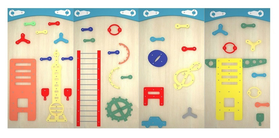 Серия дизайнерских скалодромов не только разнообразит занятия и досуг детей, но и добавит изюминку любому интерьеру. Скалодром "Стройка" состоит из 4 секций, каждая секция состоит из 2 панелей. Размер 1 секции 95х244 см. Размер : 380х244 см Материал : фанера, безопасная акриловая краска