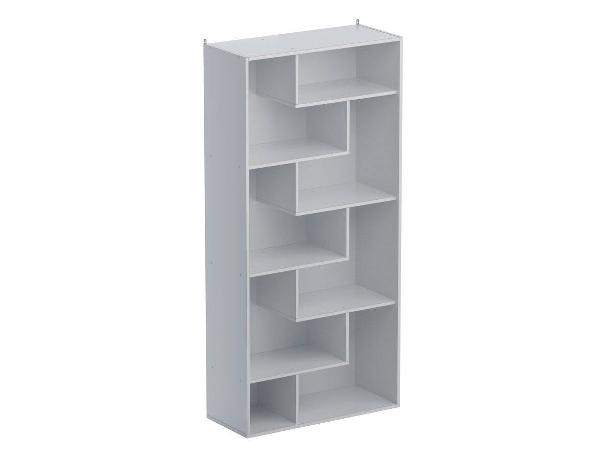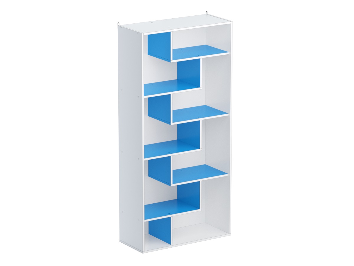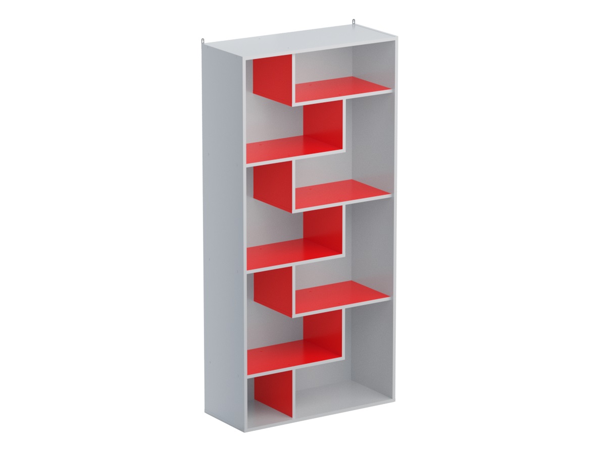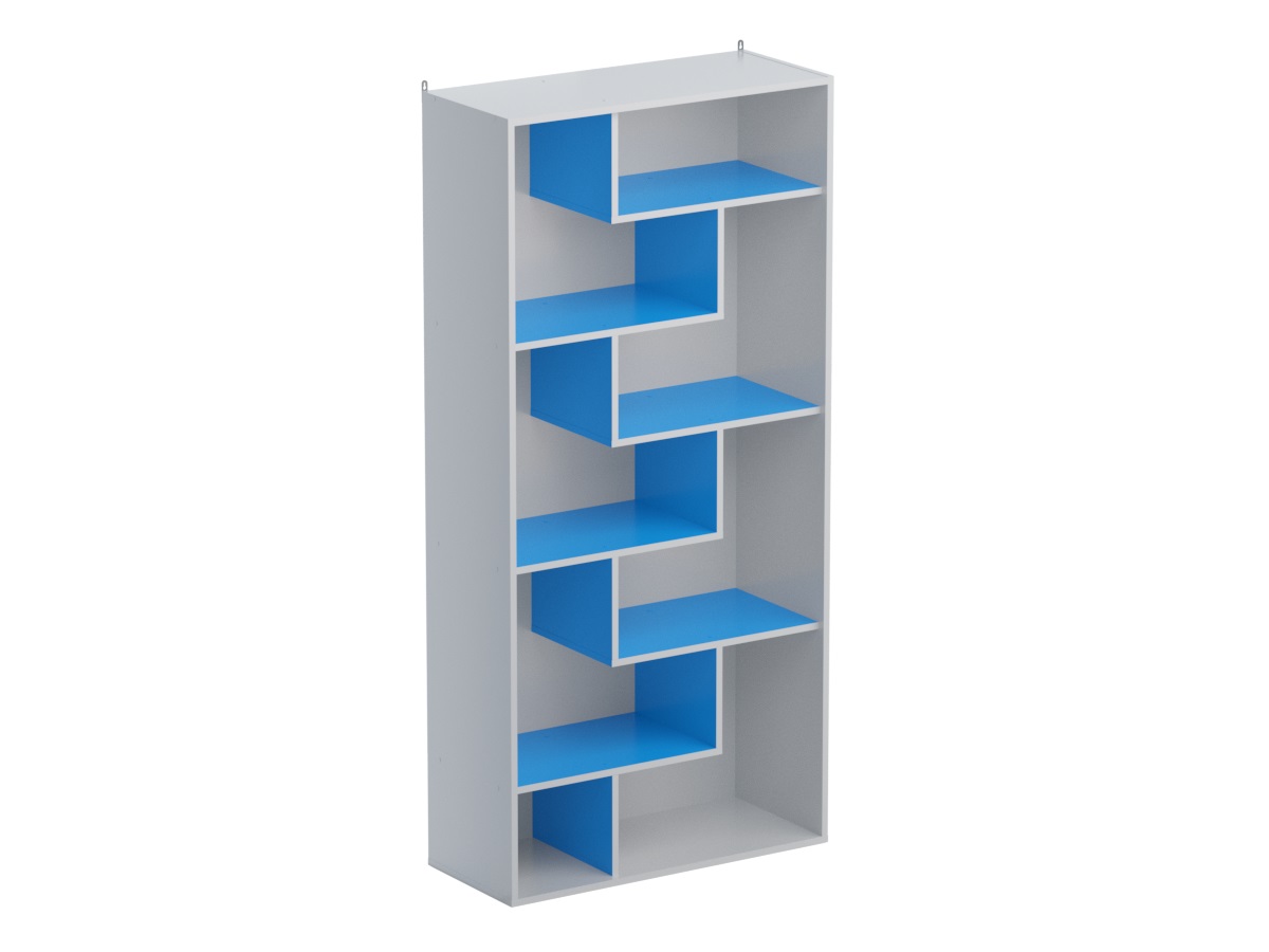 Стеллаж выполнен из ламинированной ДСП 16 мм, торцы обрамлены кромкой ПВХ. Конструкцией шкафа предусмотрены  полки в виде "зигзаг". Шкаф снабжен регулируемыми опорами, позволяющими компенсировать неровности пола. Стеллаж предназначен для учебных классов, проектов "Точка Роста", "Кванториум" и т.д. Размер: 849х356х1835 мм. Цвет и кромку уточняйте при заказе.
