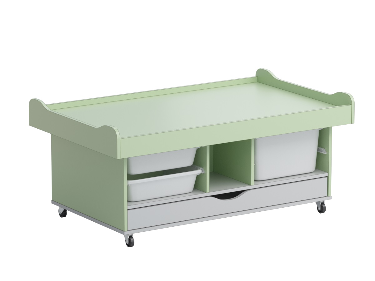 Габаритные размеры стола детского игрового: ширина – 1296 мм, глубина – 790 мм, высота – 571 мм. Высота игровой крышки стола от пола 500 мм.