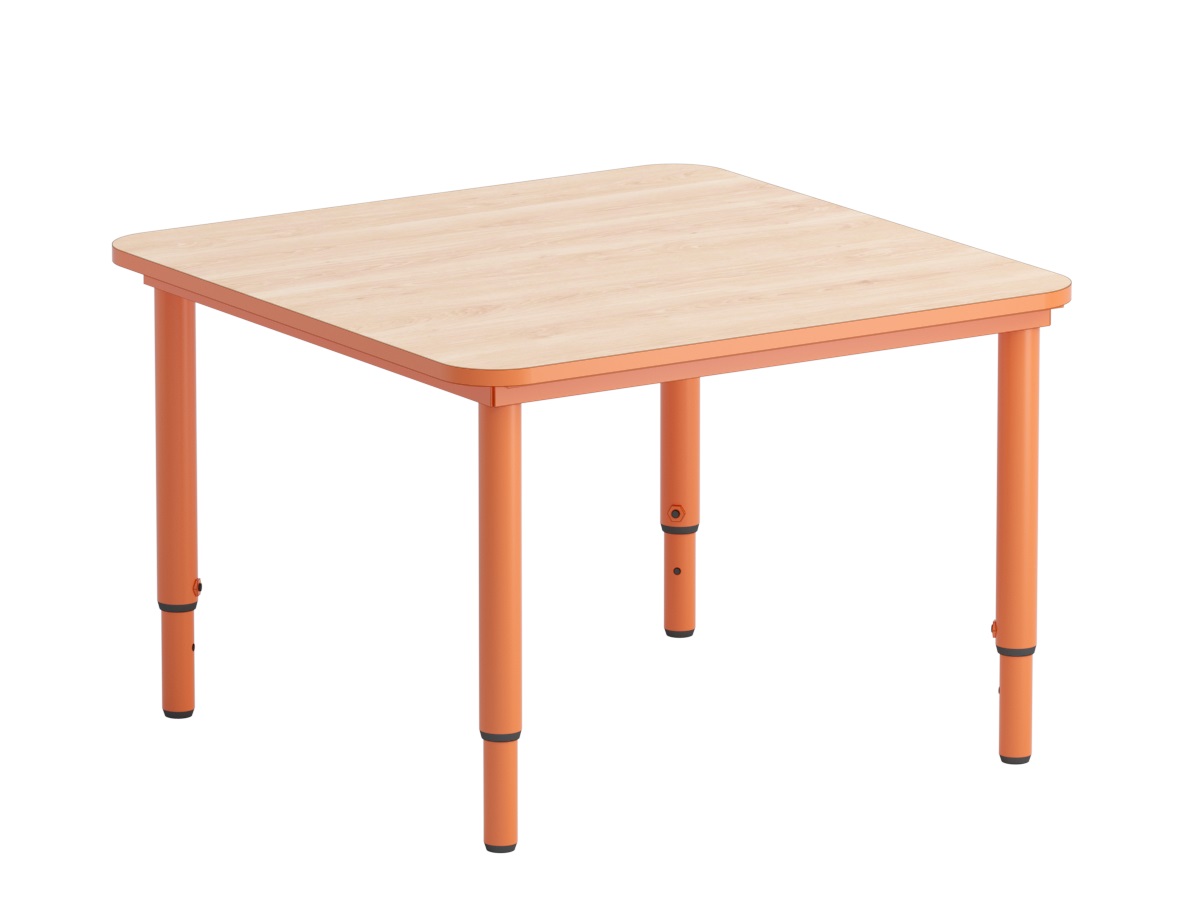 Стол детский квадратный, регулируемый по высоте, ростовая группа позволяет установить нужные параметры индивидуально, в зависимости от роста детей. Габаритные размеры: 700х700х (400/460/520/580)мм.