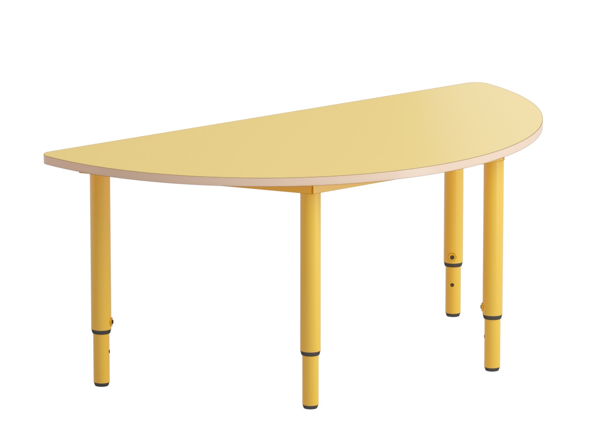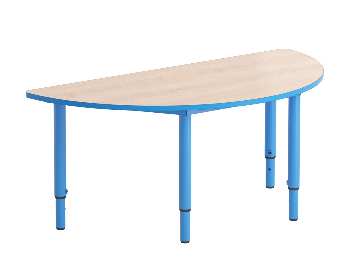 Стол игровой полукруглый, регулируемый по высоте ростовой группы 0-3, позволяет установить нужные параметры индивидуально, в зависимости от роста детей. Габаритные размеры: 1120х560х (400/460/520/580) мм.