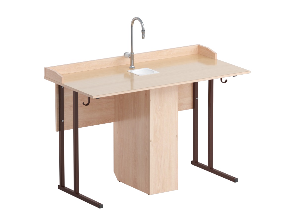 Стол ученический двухместный с БОРТИКАМИ для кабинета химии с тумбой под сантехнику изготавливается на металлическом каркасе прямоугольного сечения, окрашенном порошковой краской, стойкой к химическим и механическим воздействиям, на свободных концах труб установлены заглушки из ударопрочных полимеров. Столешница выполнена из ДСП 16 мм, облицована стойким к химическим воздействиям пластиком, торцы обрамлены кромкой ПВХ 2 мм. Крепление металлической основы со столешницей осуществляется методом скрытого крепления, без выступающих на рабочей поверхности болтов. Тумба под сантехнику выполнена из ламинированной ДСП 16 мм. Стол оборудован водоразборной колонкой и сливной раковиной. Имеется два крючка для портфелей. Каркас стола имеет полимерные подпятники, предотвращающие повреждение напольных покрытий. Размер: 1200х600х760 мм.