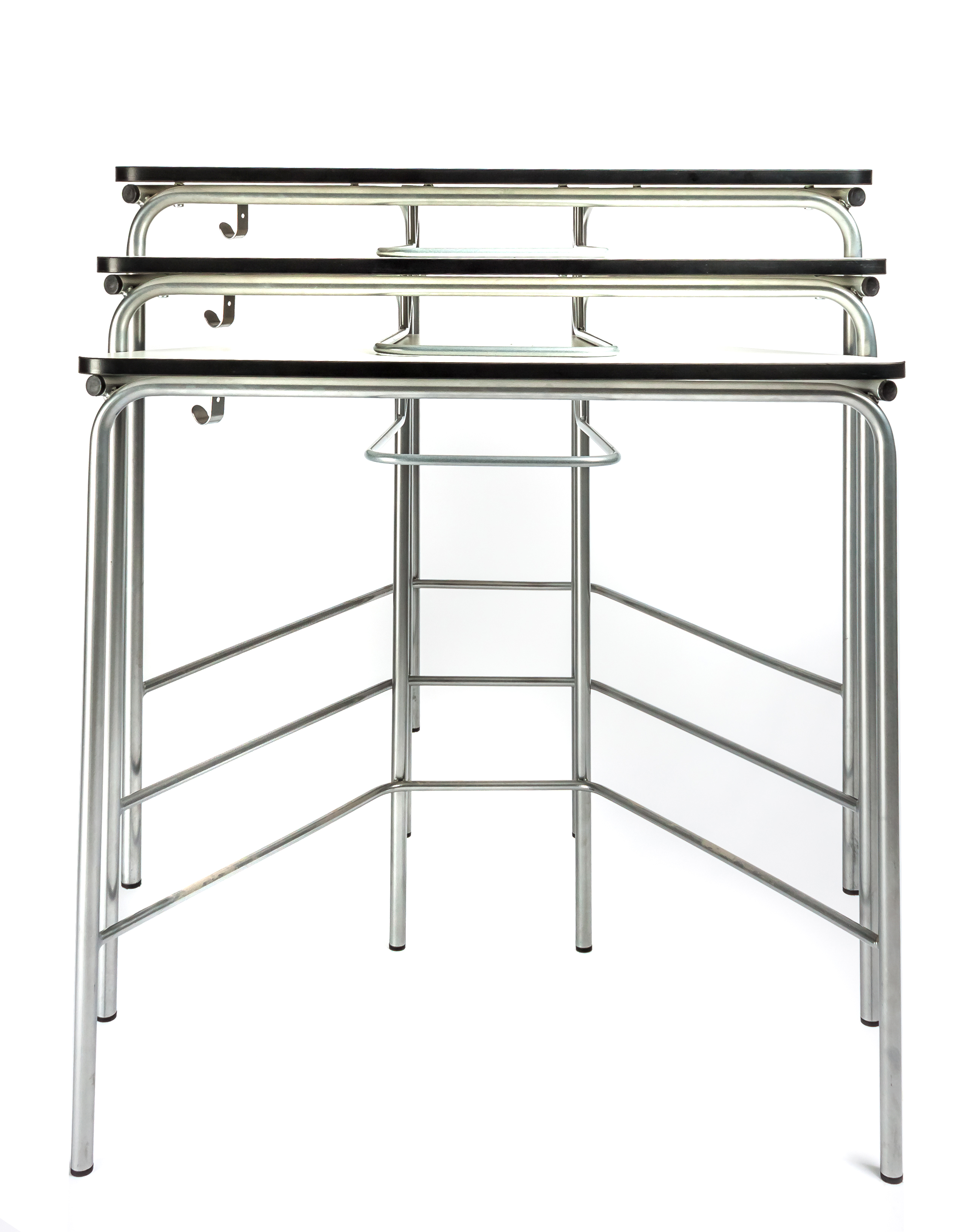Ученический стол трапеция оснащен специальными вставками для возможности штабелирования столов друг на друга.