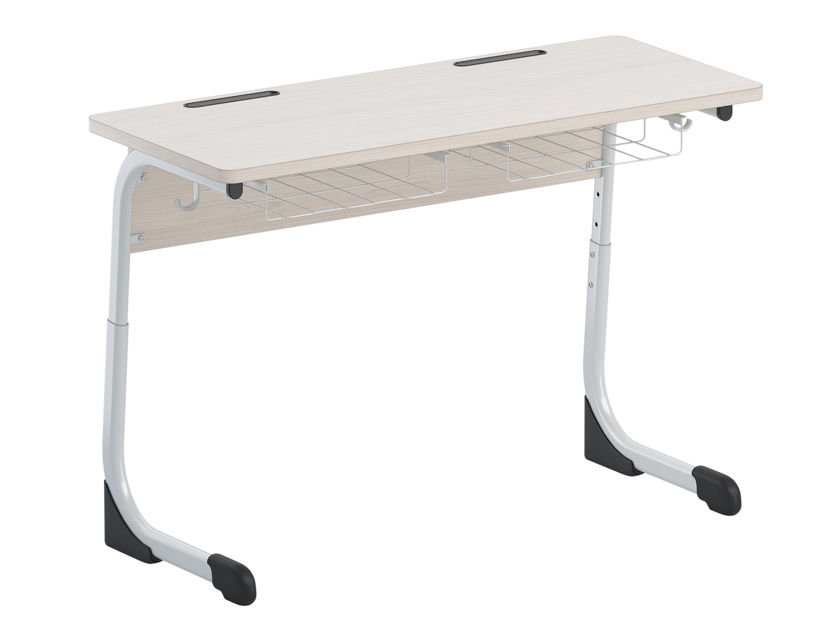 На нижних концах стоек установлены опоры из ударопрочных полимеров, которые не повреждают поверхность напольных покрытий. Имеется два крючка для портфелей. Корзина продается отдельно.