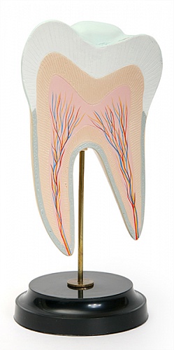 Характеристики Строение нижнего коренного зуба с двумя корнями (в разрезе)