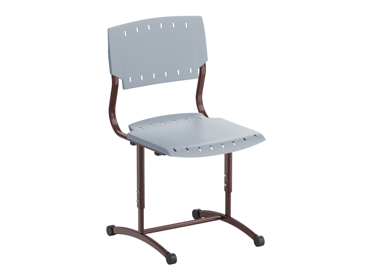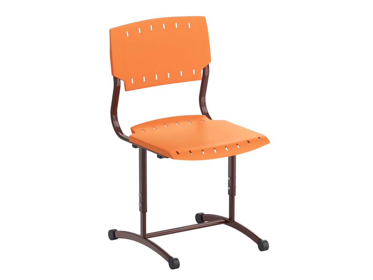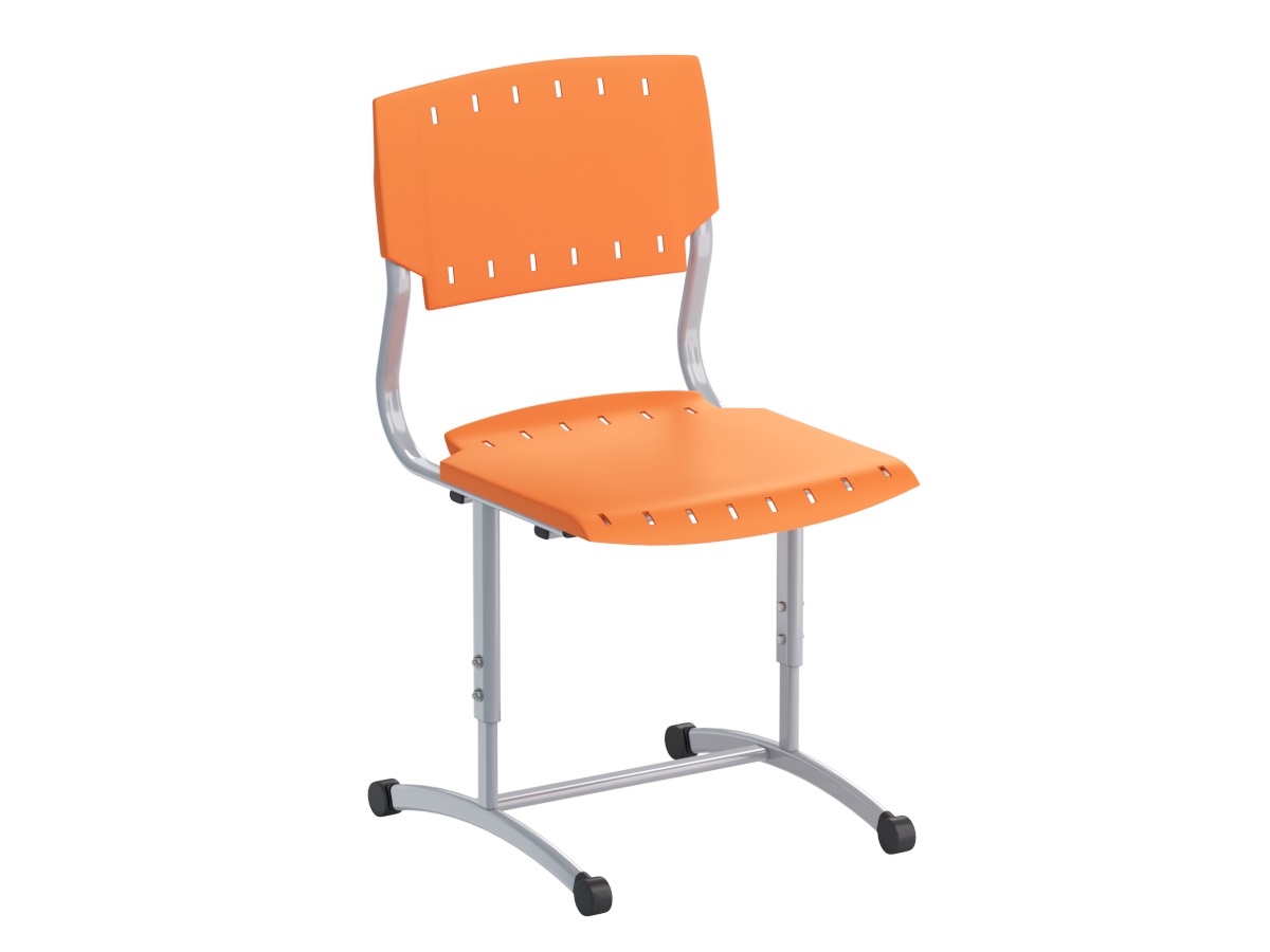 Стул ученический, регулируемый. Ростовая группа 5-7. Сиденье и спинка изготовлены из пластика методом литья. Спинка имеет изгиб в плане, все углы притуплены и имеют радиус закругления (габариты спинки 456х270 мм). Передний край сиденья имеет изгиб, все углы притуплены и имеют радиус закругления (габариты сиденья 456х410мм). Каркас стула состоит из двух подвижных опор и верхнего корпуса. Подвижные опоры выполнены сварными цельнометаллическими из плоскоовальной трубы и покрыты стойким полимерным покрытием. На свободных концах труб установлены заглушки из ударопрочных полимеров не повреждающих поверхность напольных покрытий. Цвет м/к на выбор заказчика в двух вариантах: серый; коричневый. Цвет сиденья и спинок: оранжевый, красный, зелёный, серый, синий.