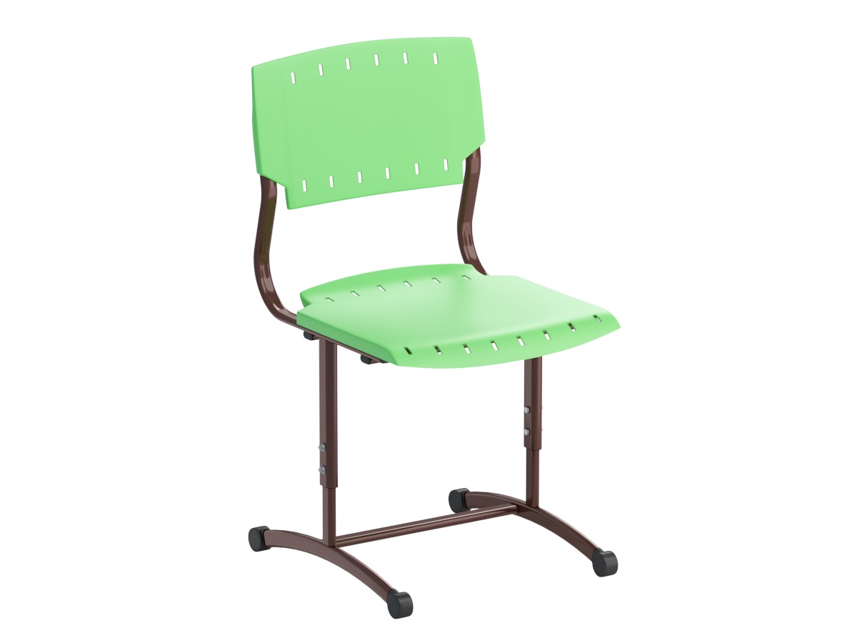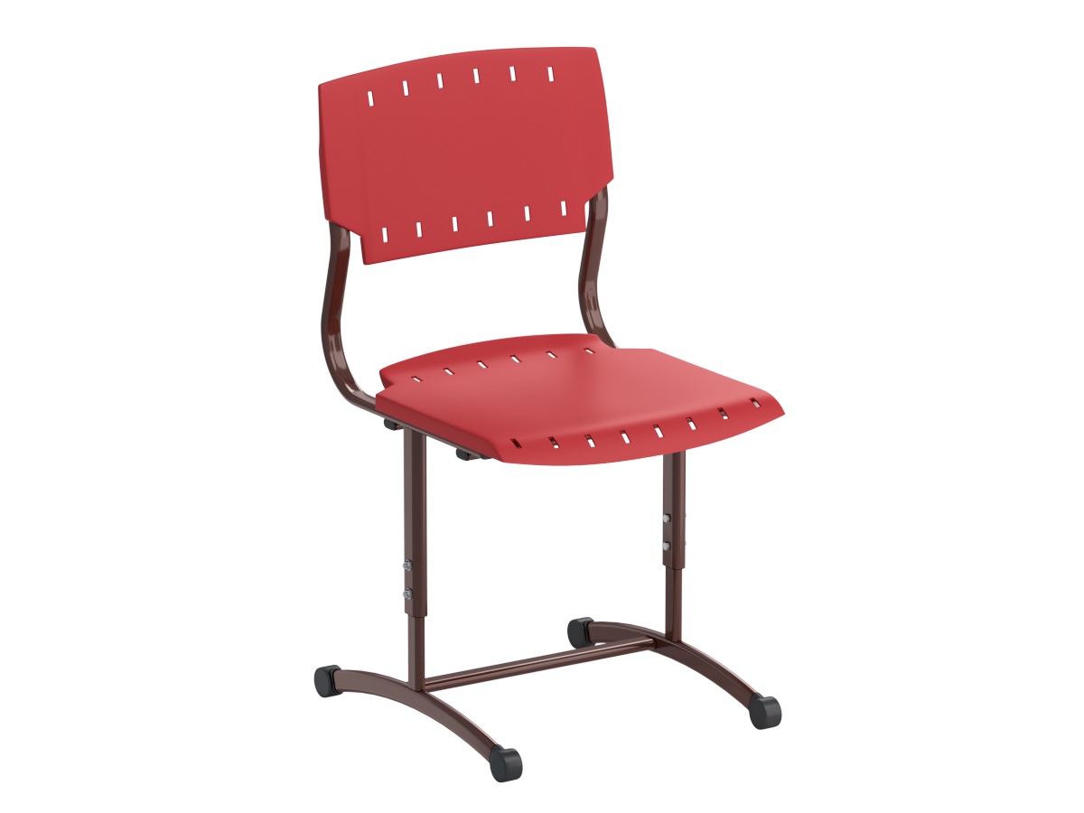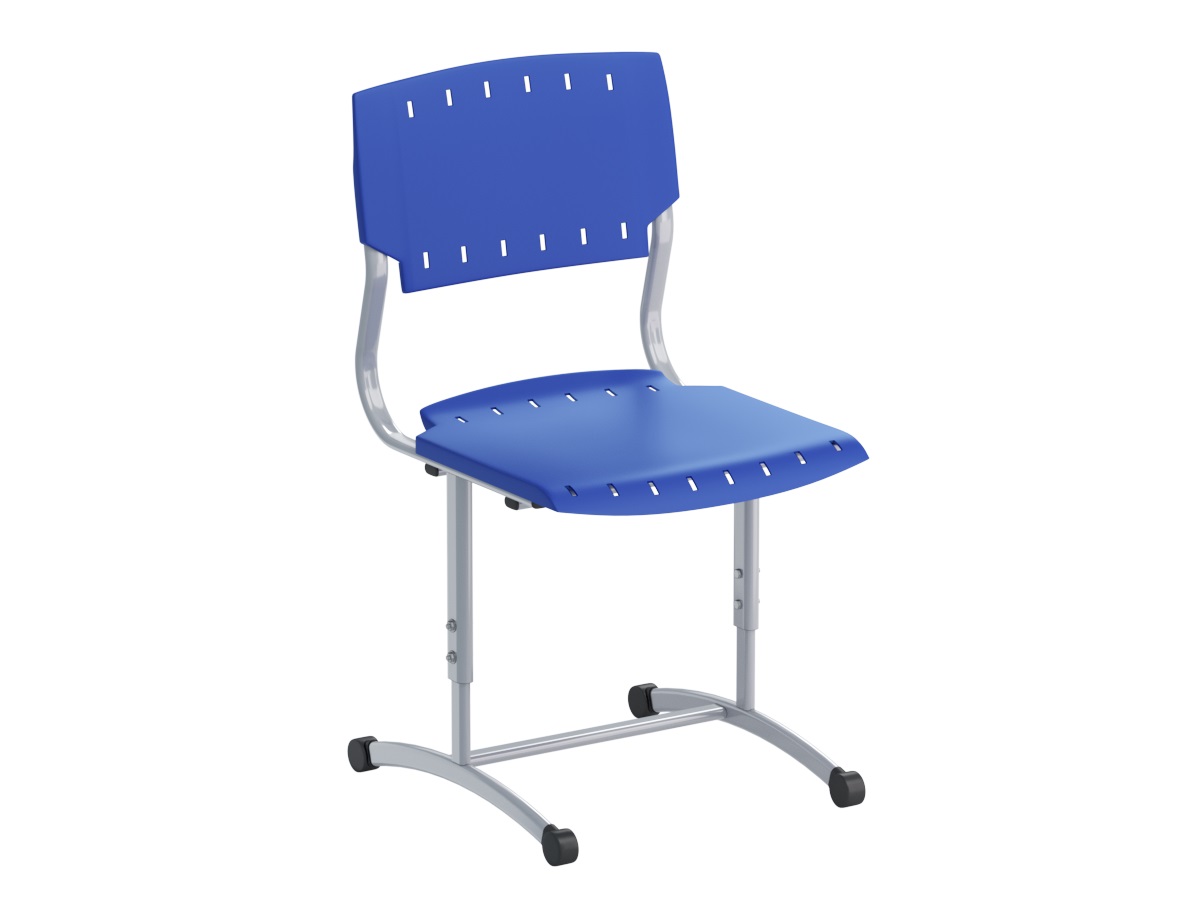 Стул ученический, регулируемый. Ростовая группа 5-7. Сиденье и спинка изготовлены из пластика методом литья. Спинка имеет изгиб в плане, все углы притуплены и имеют радиус закругления (габариты спинки 456х270 мм). Передний край сиденья имеет изгиб, все углы притуплены и имеют радиус закругления (габариты сиденья 456х410мм). Каркас стула состоит из двух подвижных опор и верхнего корпуса. Подвижные опоры выполнены сварными цельнометаллическими из плоскоовальной трубы и покрыты стойким полимерным покрытием. На свободных концах труб установлены заглушки из ударопрочных полимеров не повреждающих поверхность напольных покрытий. Цвет м/к на выбор заказчика в двух вариантах: серый; коричневый. Цвет сиденья и спинок: оранжевый, красный, зелёный, серый, синий.