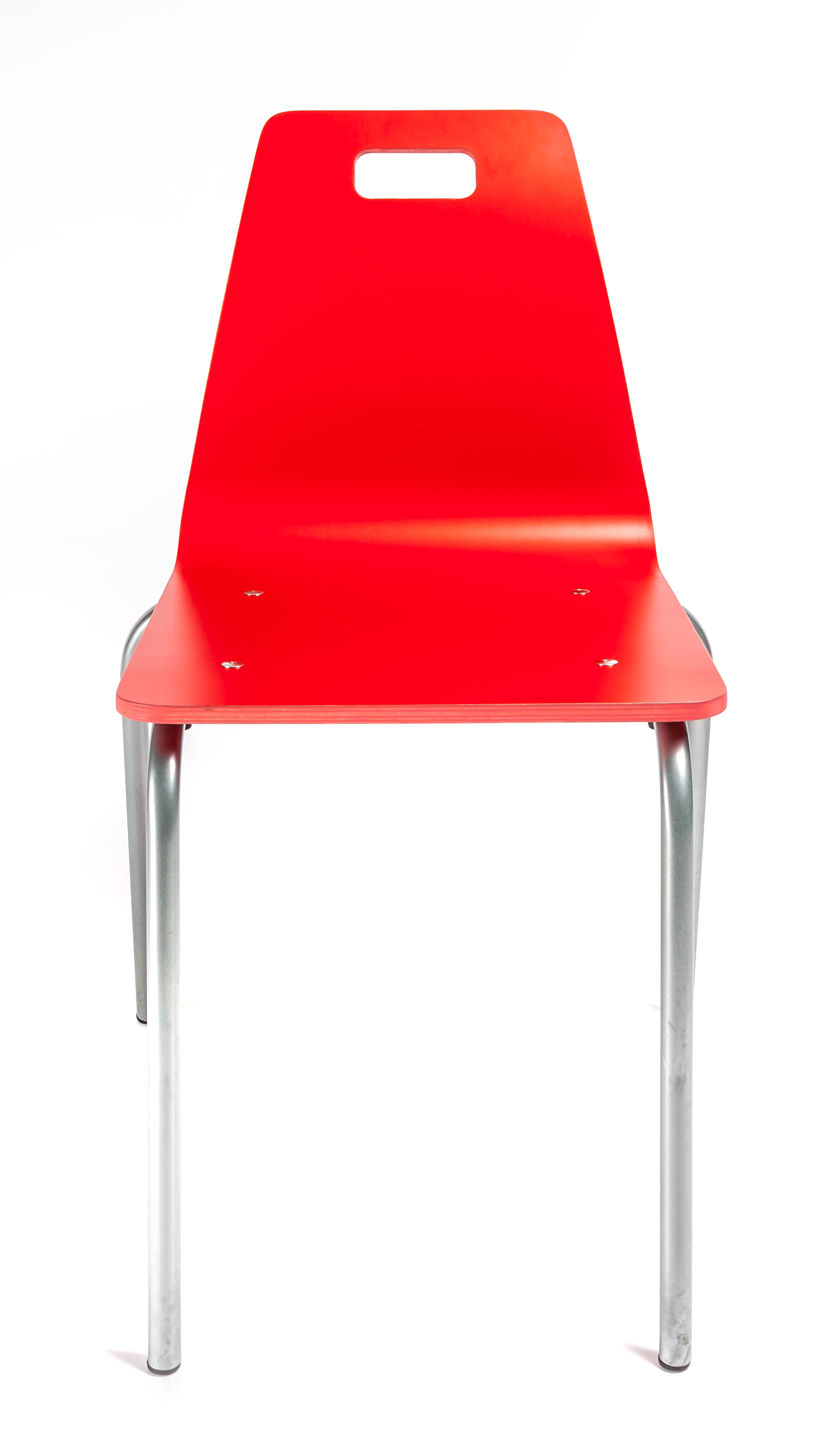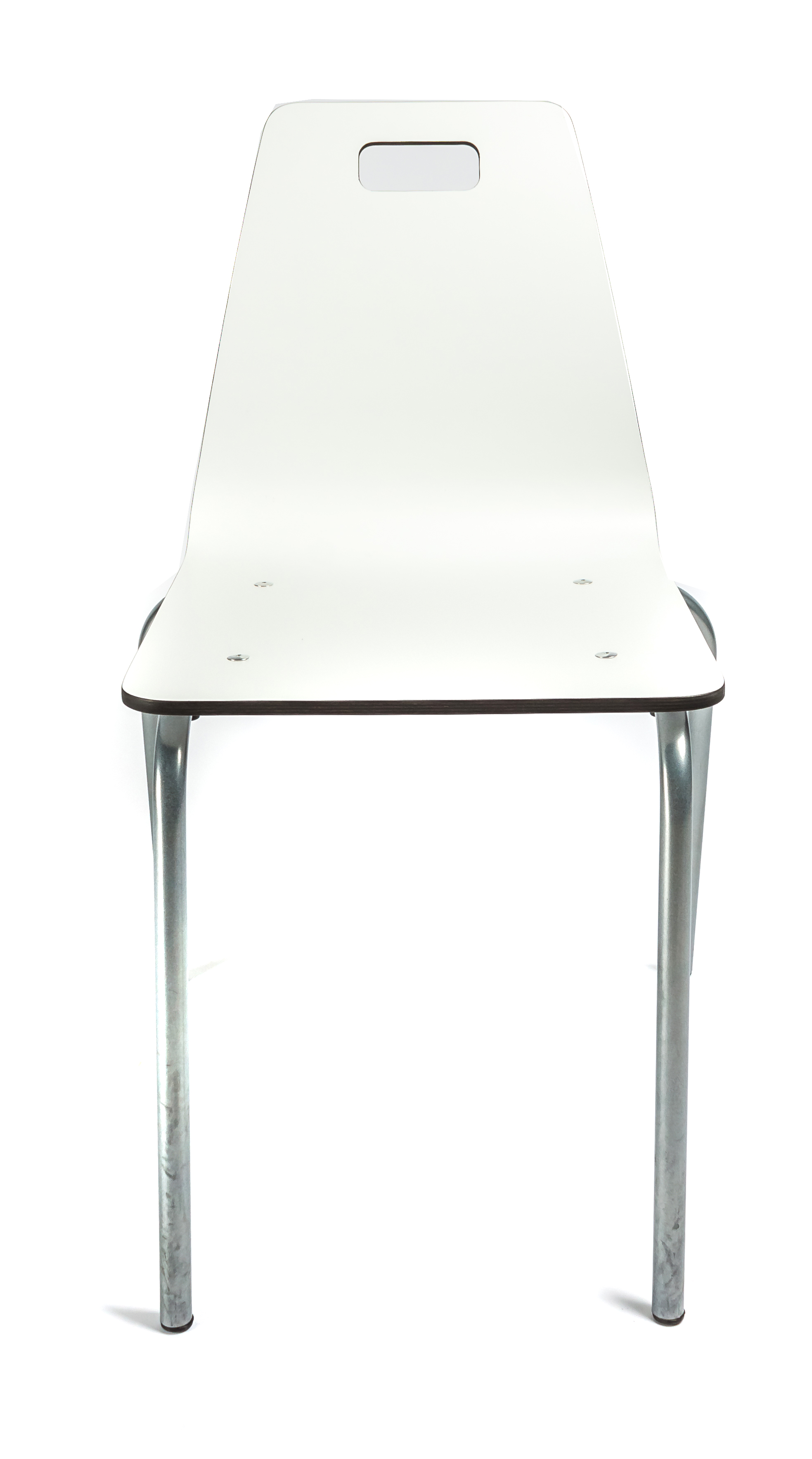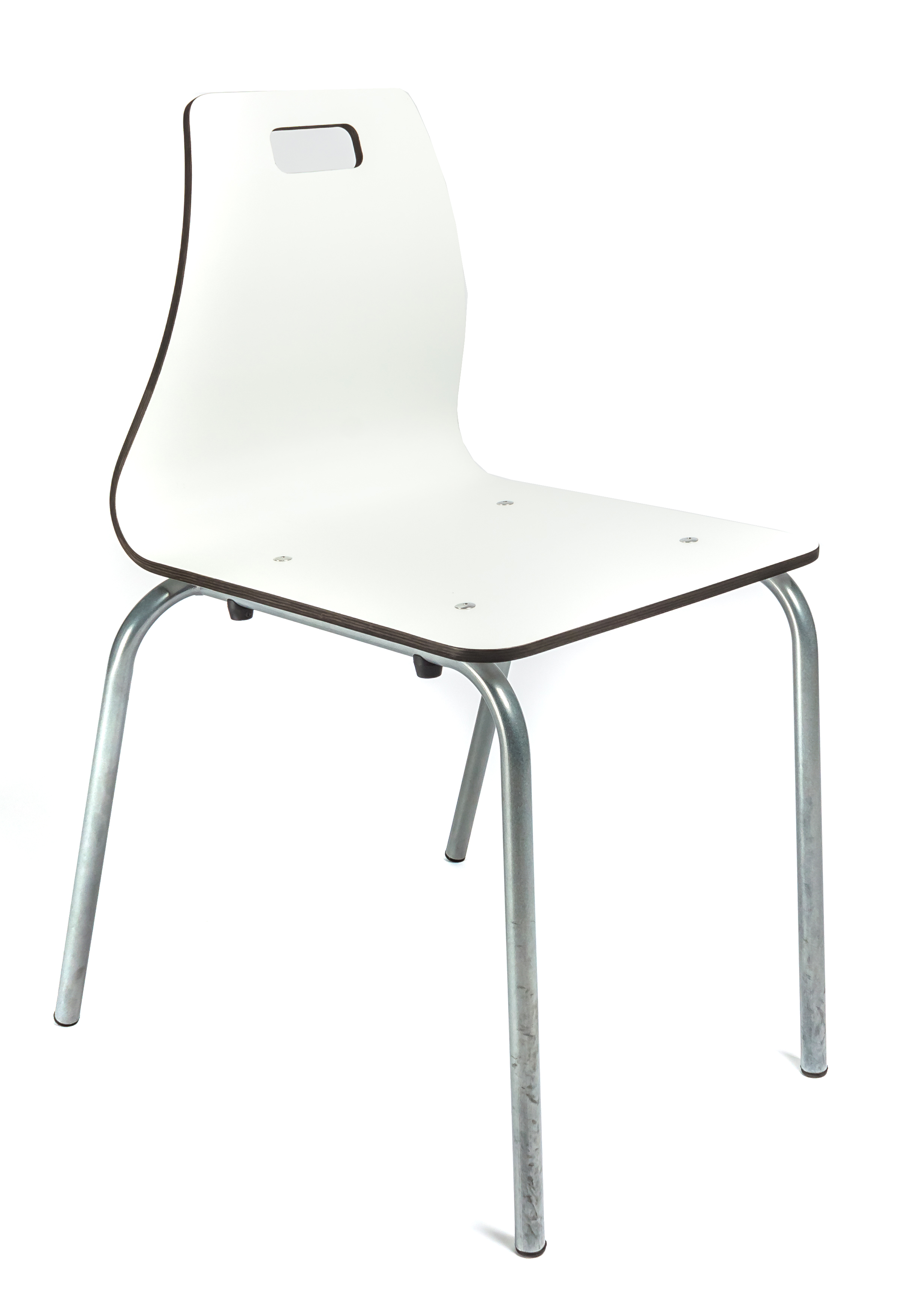 Изготовлен из гнуто-клееной фанеры, покрытый бумажно-слоистым пластиком (HPL) с металлическими ножками и весит 5,7 кг. Возможна установка до 12 стульев друг на друга (штабелирование).