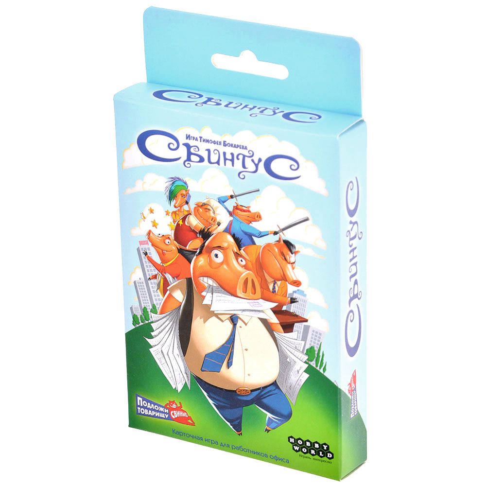 Настольная игра "Свинтус" – это весёлая и быстрая карточная игра для любой компании от 2 до 10 человек. Игра подойдёт детям, но в неё интересно играть и взрослым. В неё можно играть дома, в кафе или в дороге – "Свинтус" прекрасно скрасит ваш досуг. Простые правила, яркий и милый дизайн, динамичный игровой процесс – эти особенности превратили "Свинтуса" в настоящий хит! Хотя сама игра и полностью карточная, тем не менее в ней вам пригодятся даже такие навыки, как хорошая реакция, рефлексы, внимательность и память. Ну и, конечно, компания товарищей, готовых как следует поразвлечься!