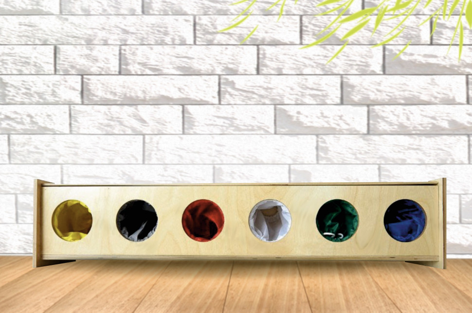 Тактильные ячейки в виде короба с открывающейся верхней крышкой и ячейками с мешочками. Цель игры - на ощупь определить что лежит внутри мешочка. Эти простые задания позволяют развивать ребенку тактильную чувствительность, знакомят в разными текстурами, формами и весами, расширяют словарный запас. Внутри короба между занятиями можно хранить предметы до следующего занятия. Размер : 102х25х25 см Материалы : фанера, безопасный водорастворимый лак, ткань