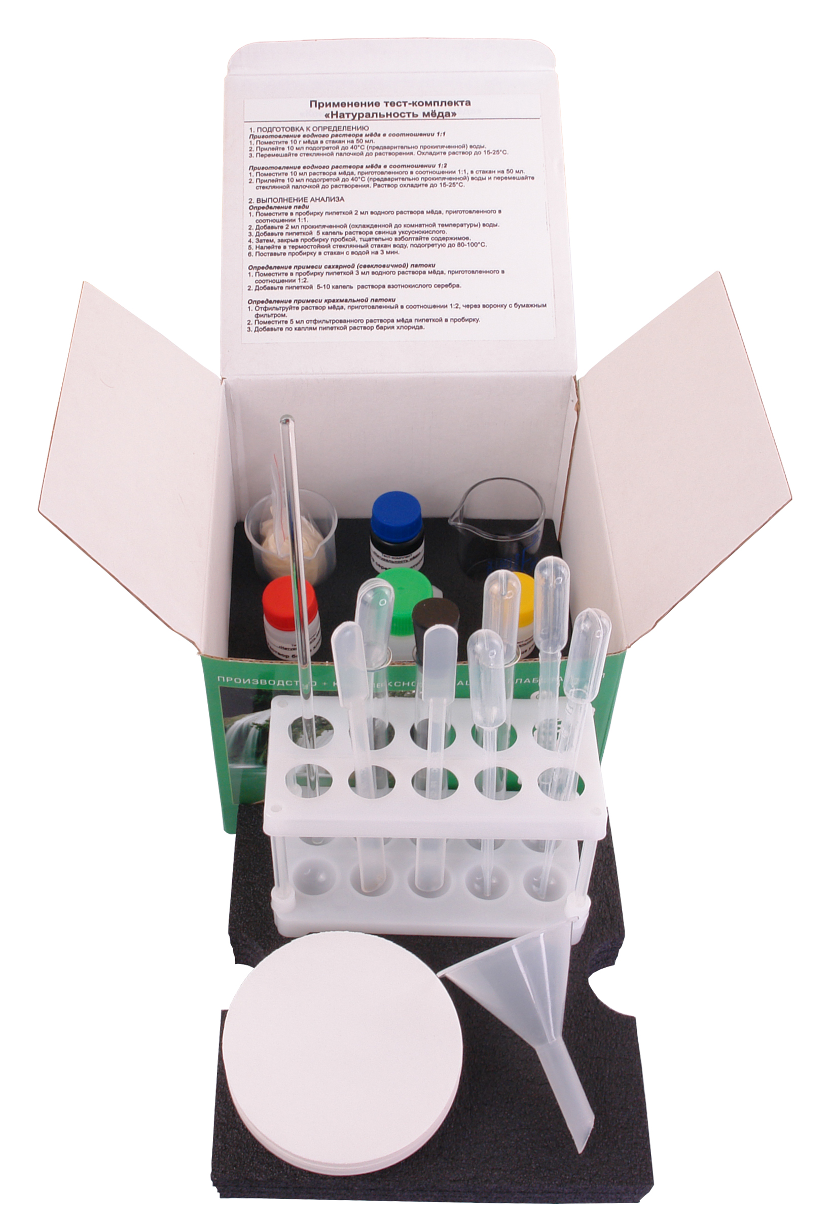 Тест-комплект максимально прост и удобен в использовании, позволяет при минимальных затратах осуществлять полноценную оценку натуральности мёда, определять его подделки и фальсификаты.