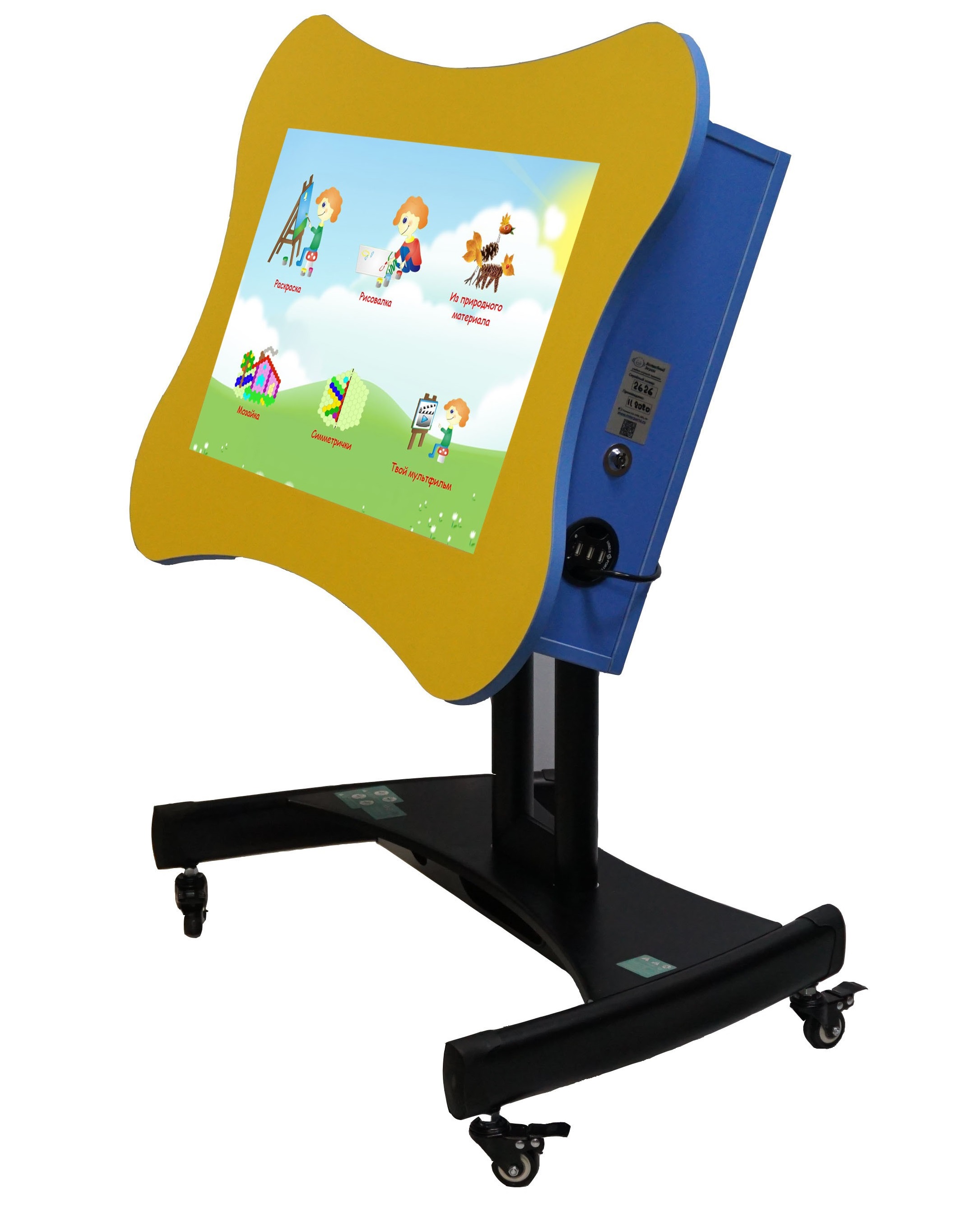 Особенностью этой интерактивной панели является ее мобильность, возможность регулировки высоты и наклона столешницы.